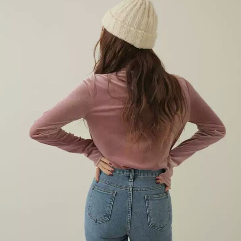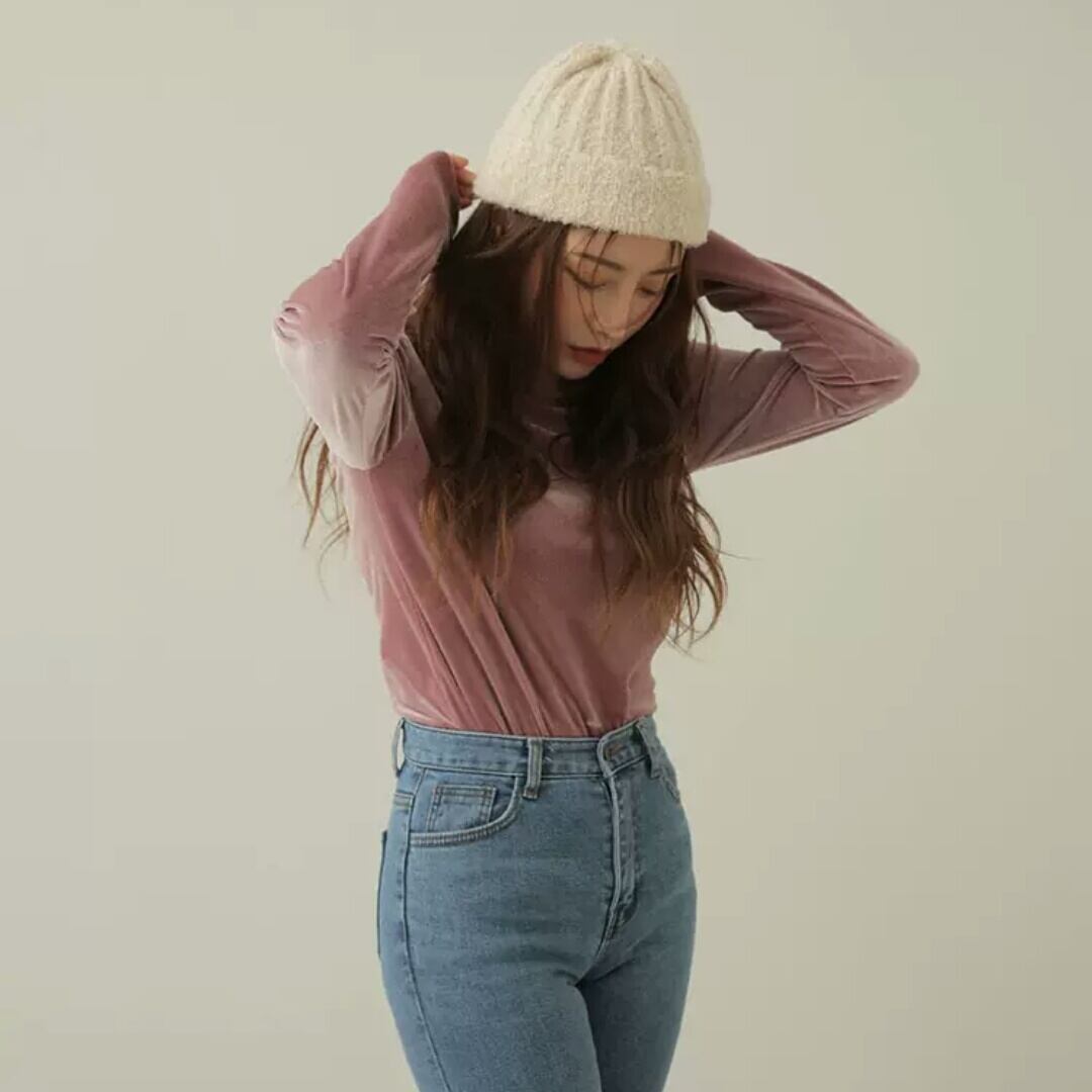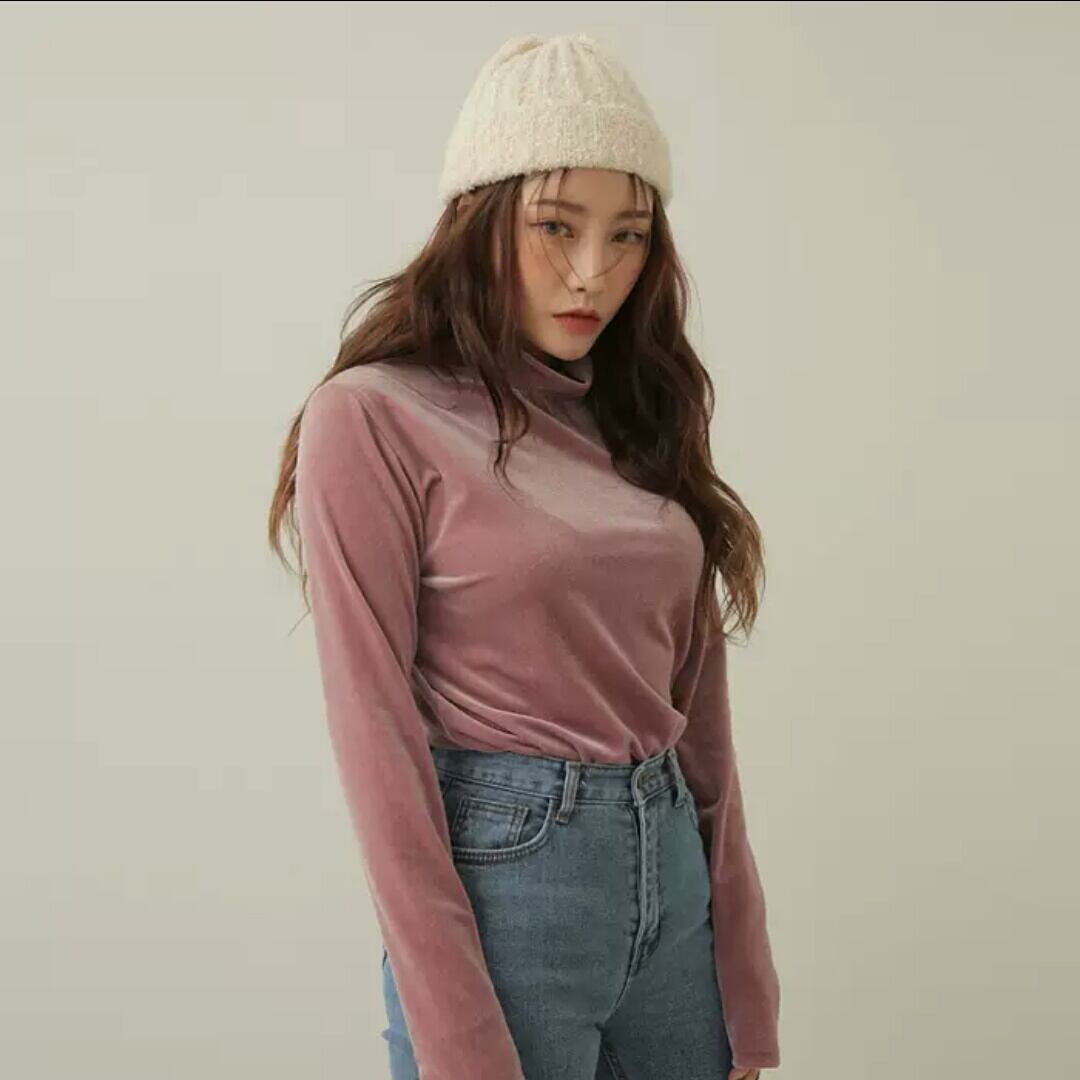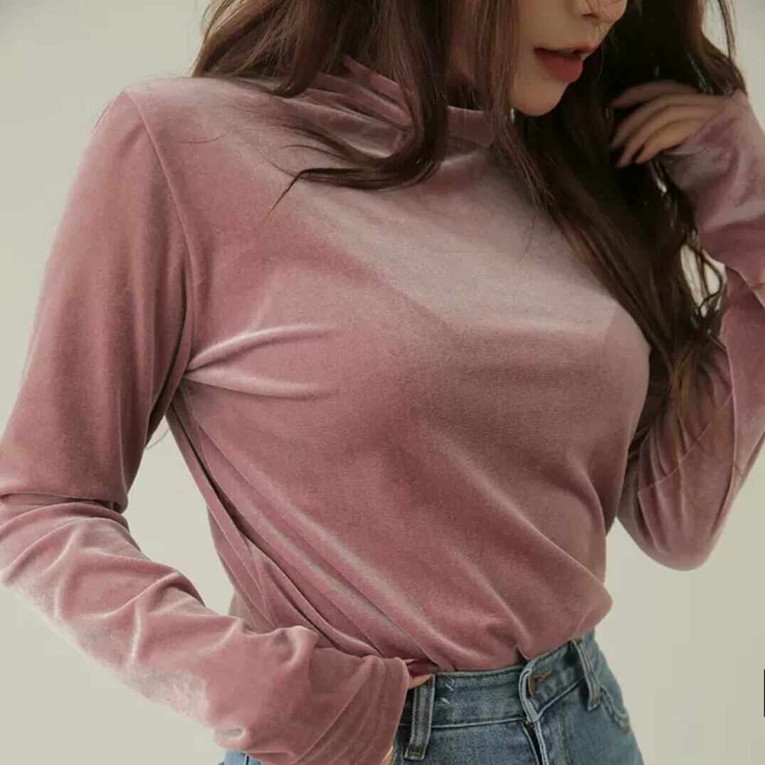 全4色 ベルベット ハイネック カットソー トップス 長袖 無地 重ね着 インナー スリム 大人 キレイめ 可愛い カジュアル お出かけ お買い物 デート 女子会 秋冬 春 通学 学生 通勤 韓国ファッション