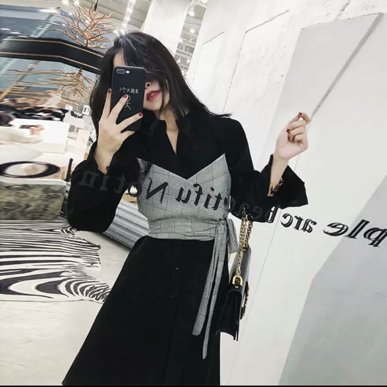 大人シックなデザインでウエストのチェック柄がポイント!
