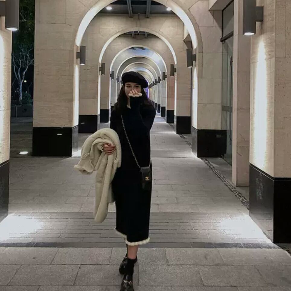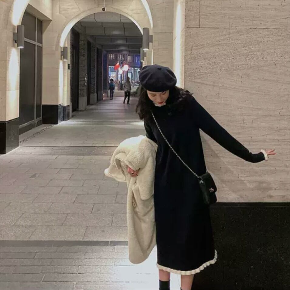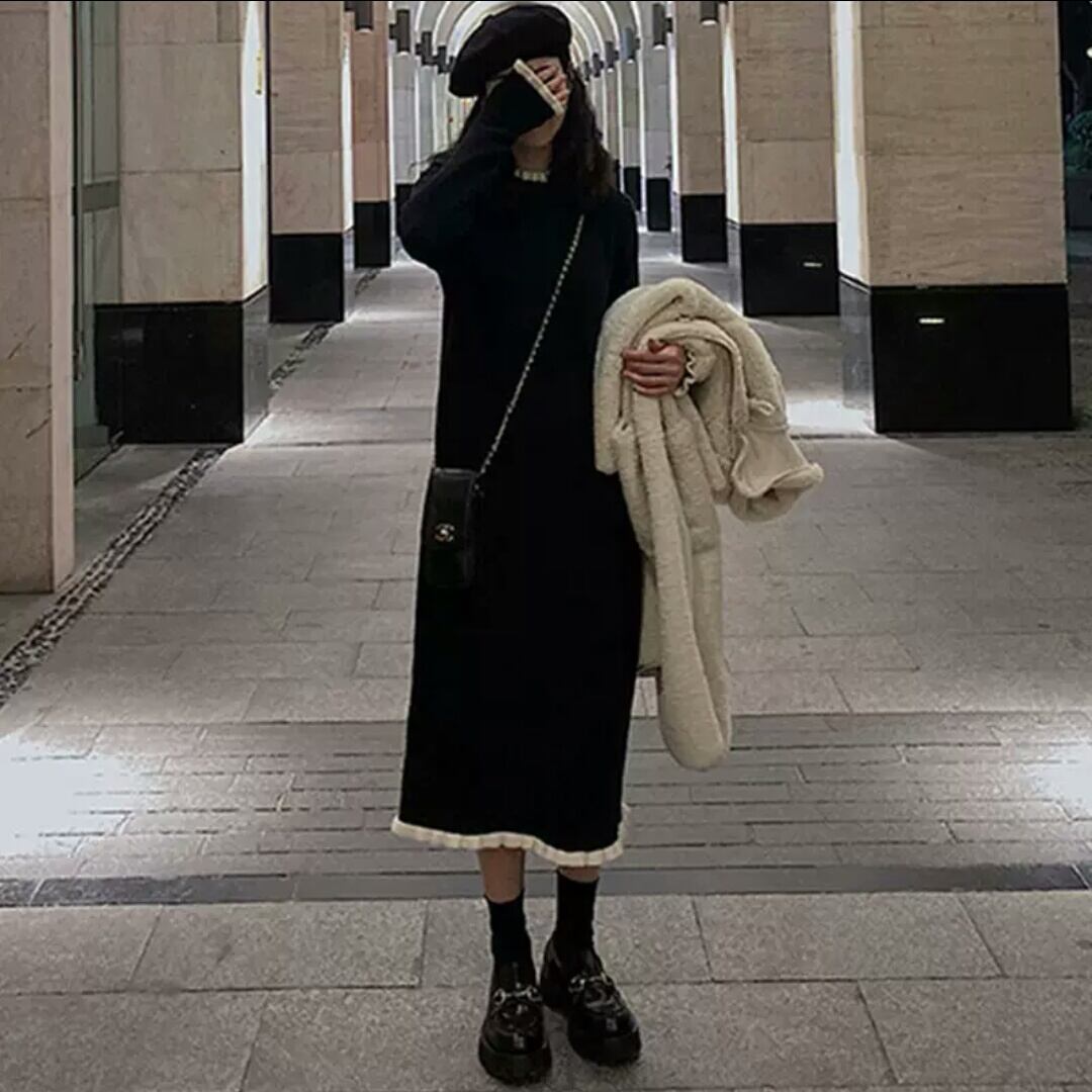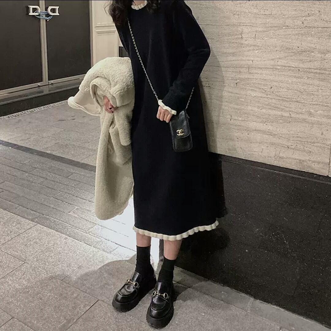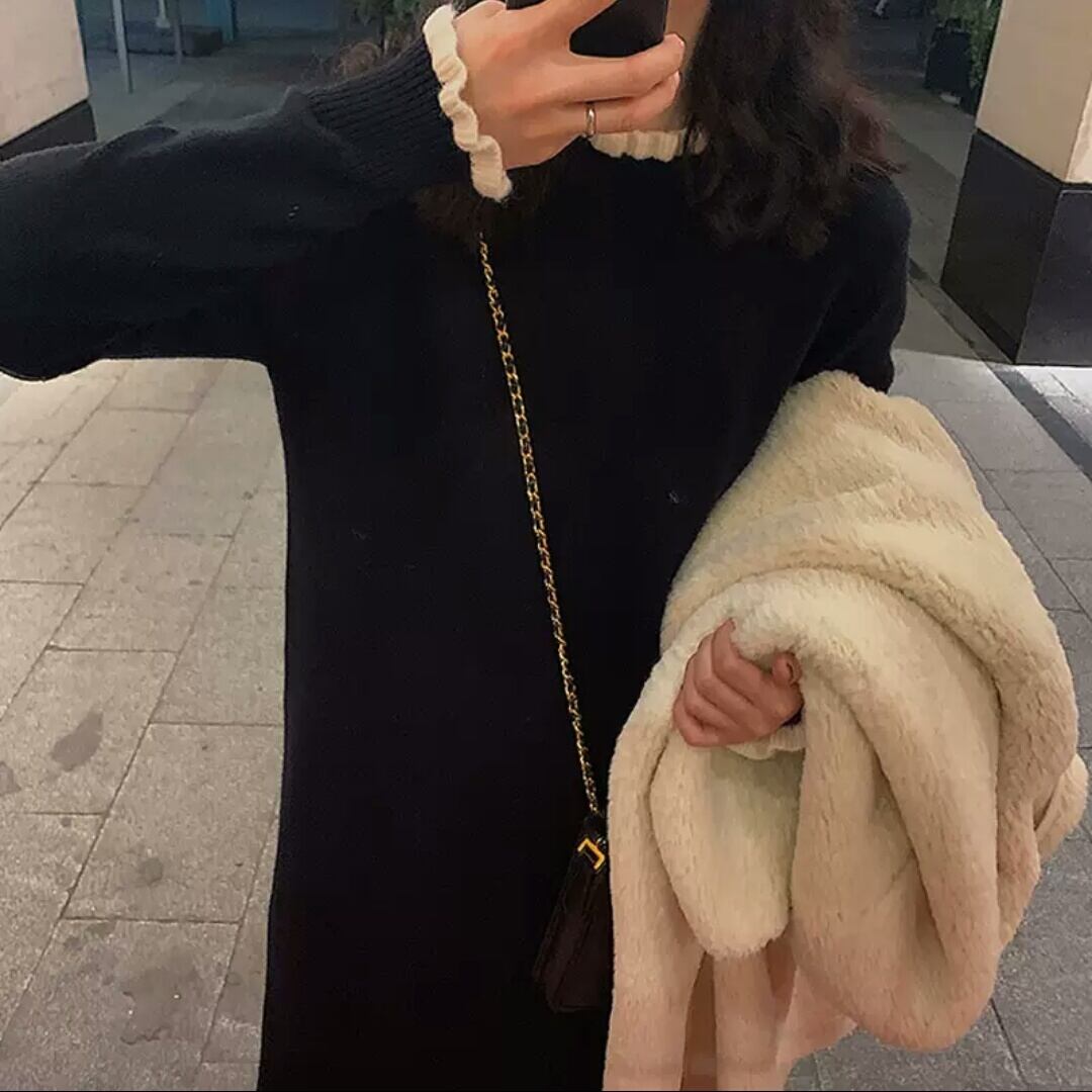 ロング丈 ニット ワンピース 無地 シンプル シック 大人 カジュアル キレイめ 可愛い お出かけ お買い物 デート 女子会 秋冬 春 通学 学生 通勤 韓国ファッション 大きいサイズ
