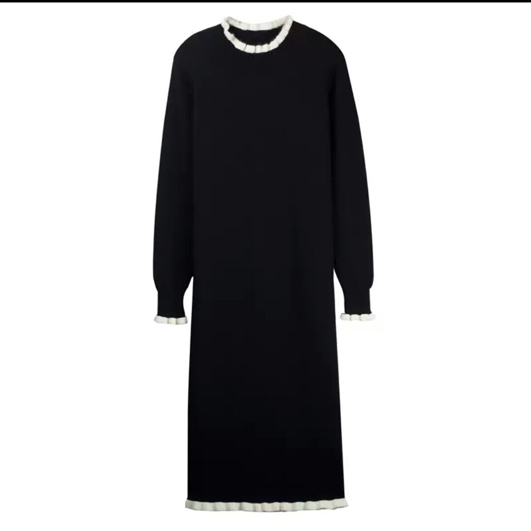 ロング丈のシンプルニットワンピース♪