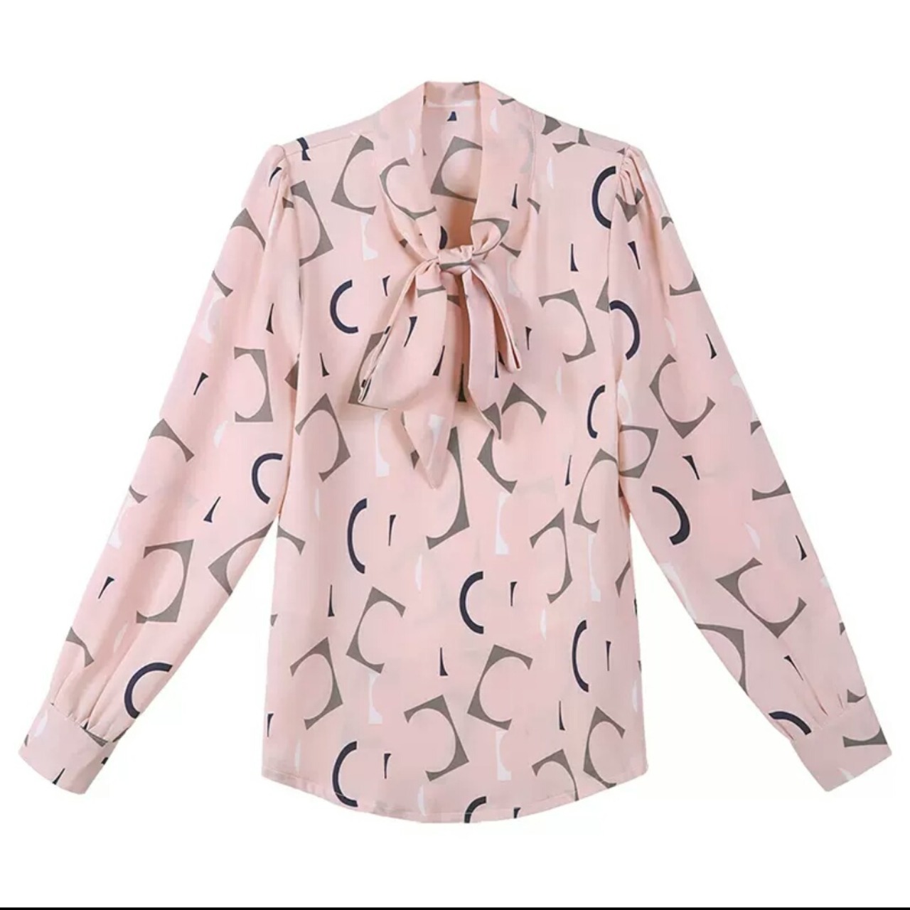 全5色 Vネック リボン シフォン シャツ デザイン 柄 大人 キレイめ 可愛い スタイリッシュ エレガント お出かけ お買い物 デート 女子会 秋冬 春 通学 学生 通勤 韓国ファッション