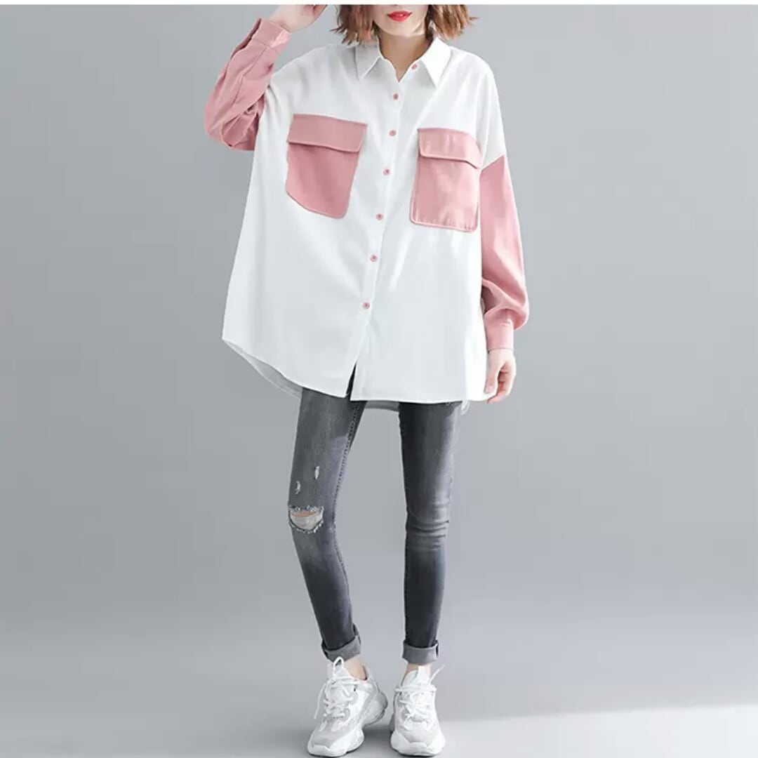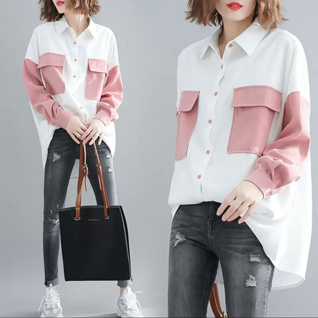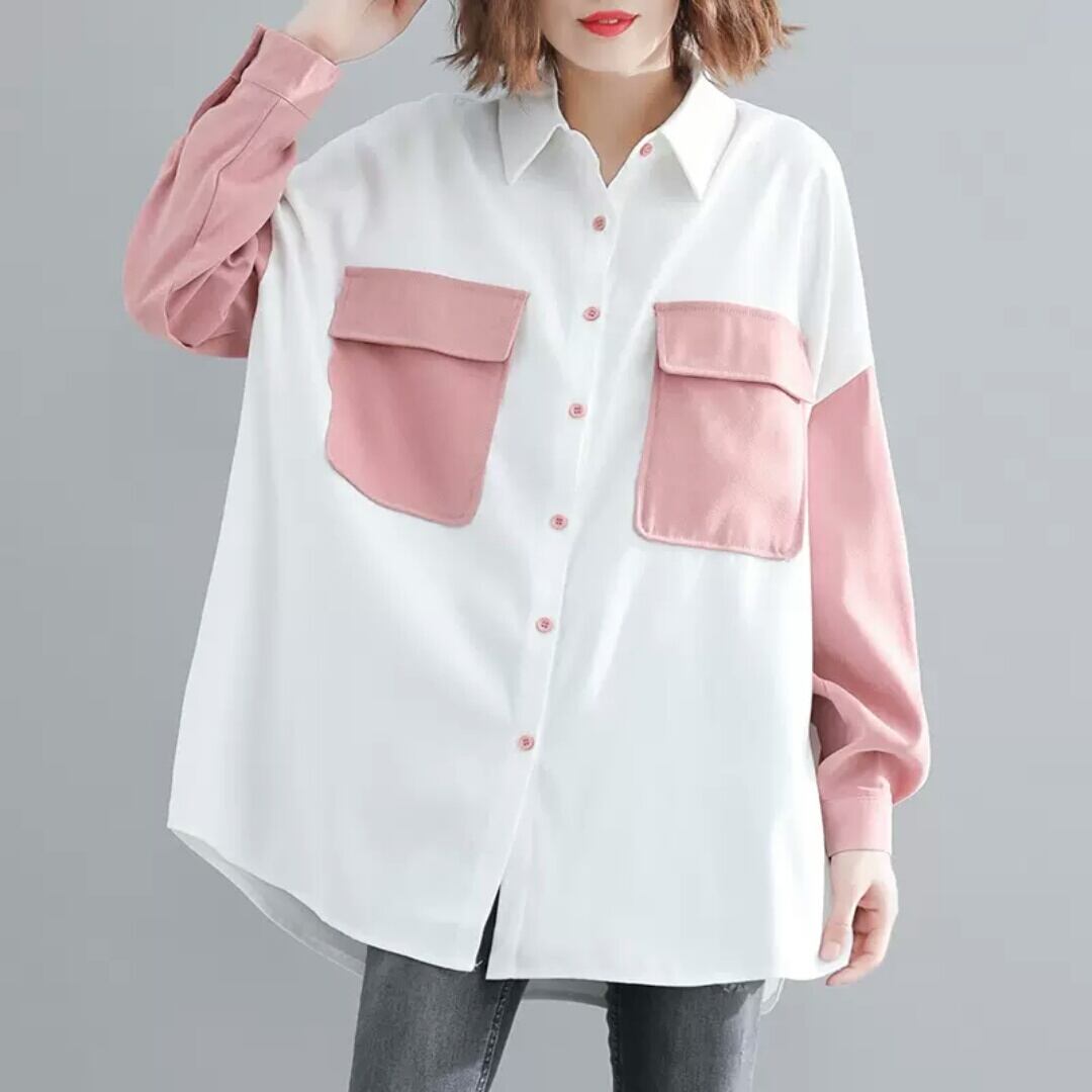 ツートーン シンプル シャツ 大人 キレイめ 可愛い カジュアル お出かけ お買い物 デート 女子会 秋冬 春 通学 学生 通勤 韓国ファッション 大きいサイズ