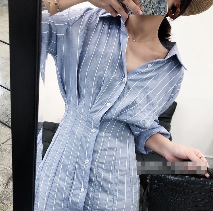 ストライプ柄が上品で大人っぽい印象のシャツワンピースです。