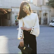 トランペットスリーブのラウンドネックシャツ♪