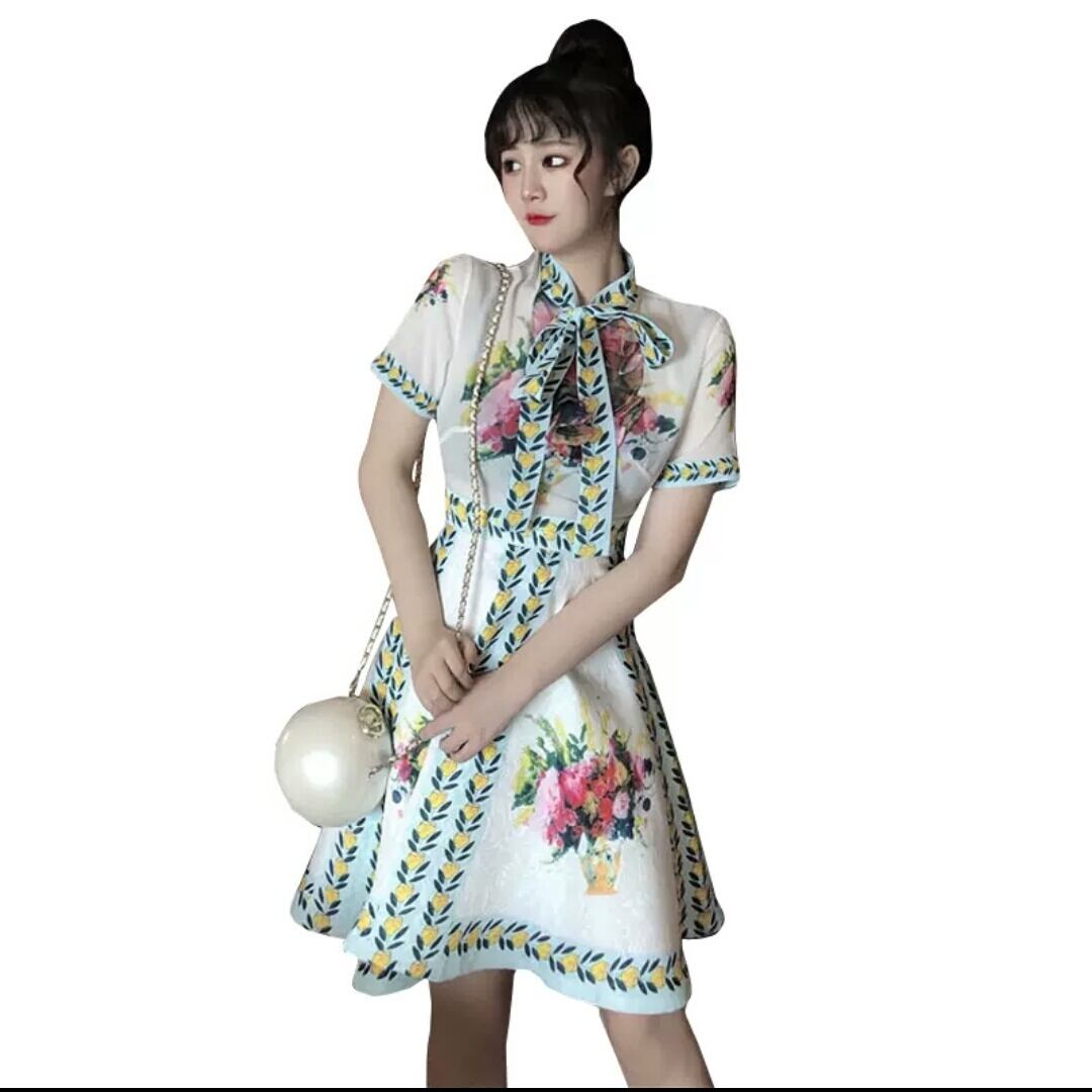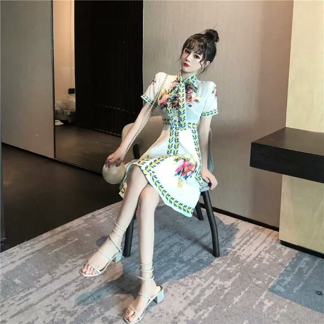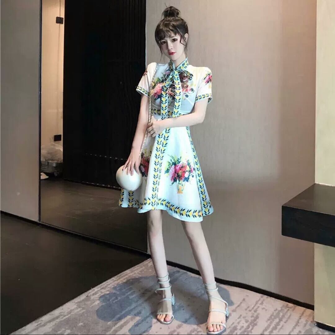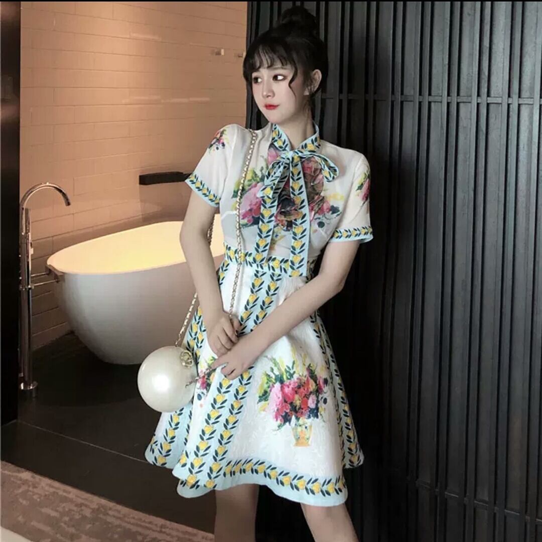 ショート丈 レトロ ハイウエスト 花柄 ドレス ワンピース 大人 可愛い エレガント キレイめ 上品 お出かけ お買い物 デート 女子会 春 夏 通勤 通学 学生 韓国ファッション