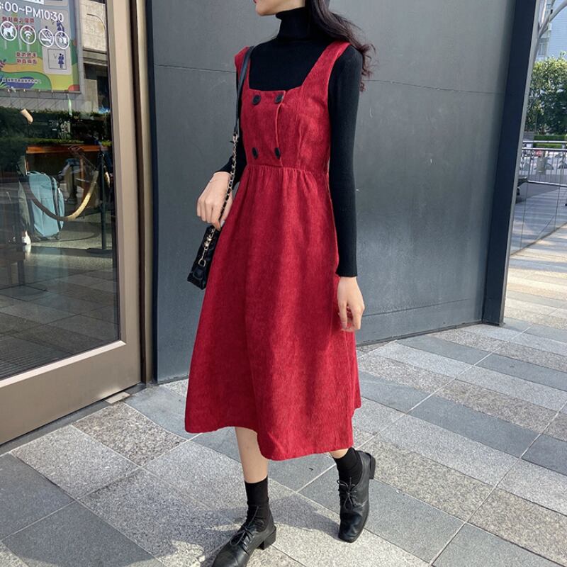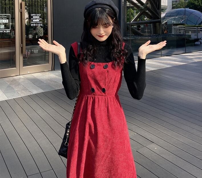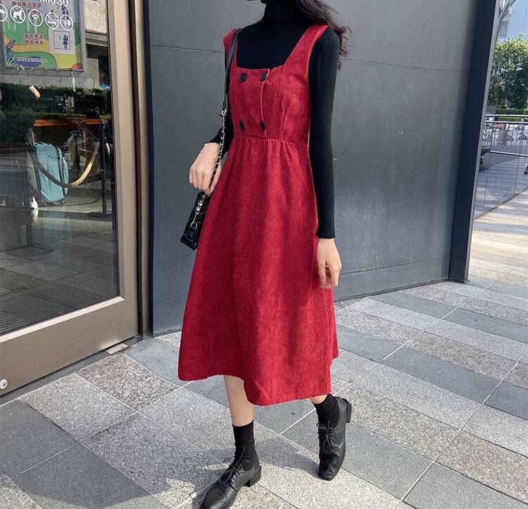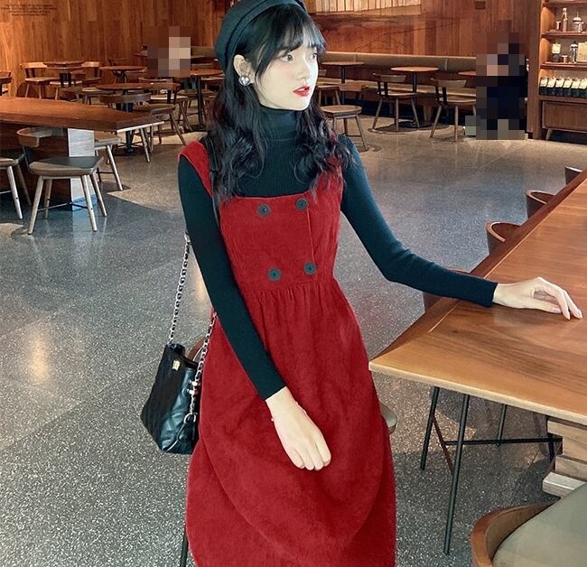 セットアップ ツーピース ジャンパースカート サロペットスカート カットソー セーター コーデュロイ フロントボタン ミモレ丈 カジュアル きれいめ デート 上品 大人可愛い 春 秋 冬