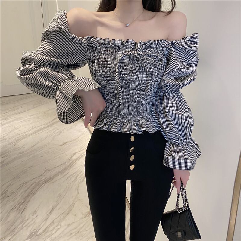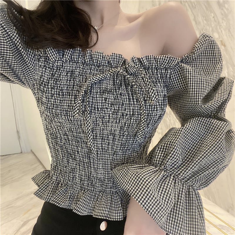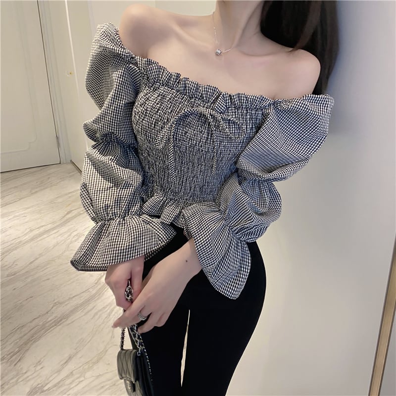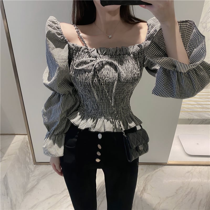 ボリューム感のあるパフスリーブが可愛いシャーリングブラウス。
