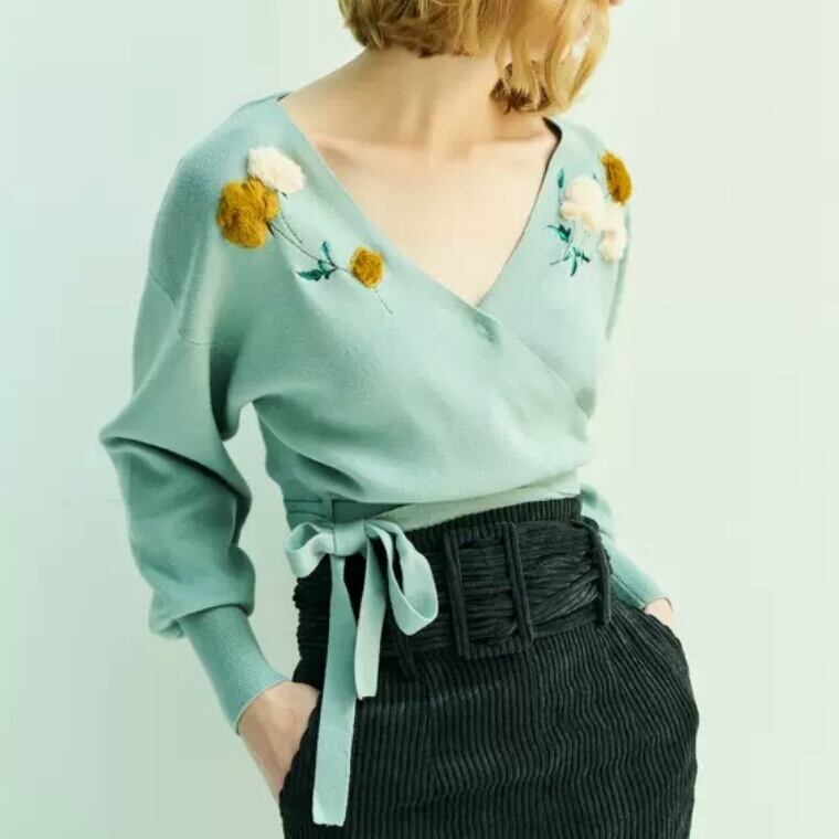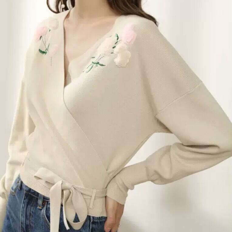 全3色 花柄 刺繍 クロス ニット トップス セーター 大人 キレイめ エレガント 上品 可愛い お出かけ お買い物 デート 女子会 春 夏 通学 学生 通勤 韓国ファッション