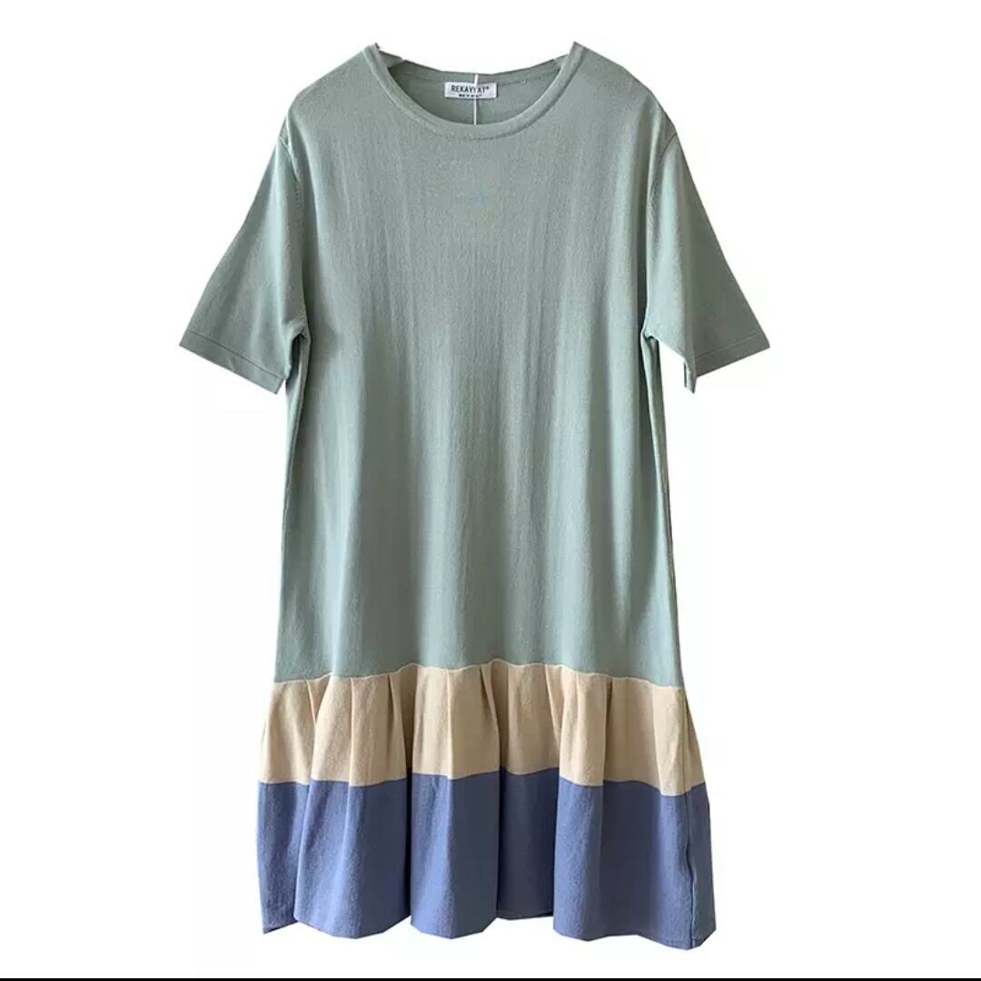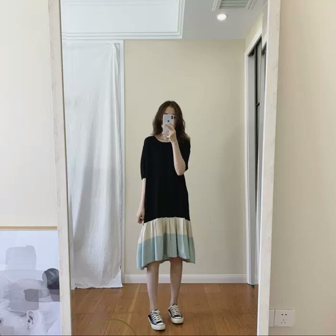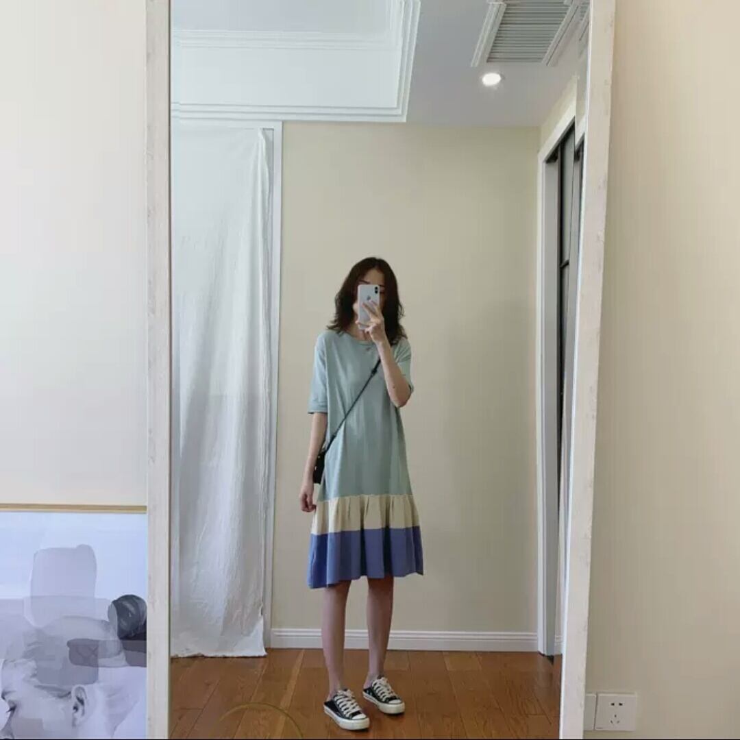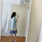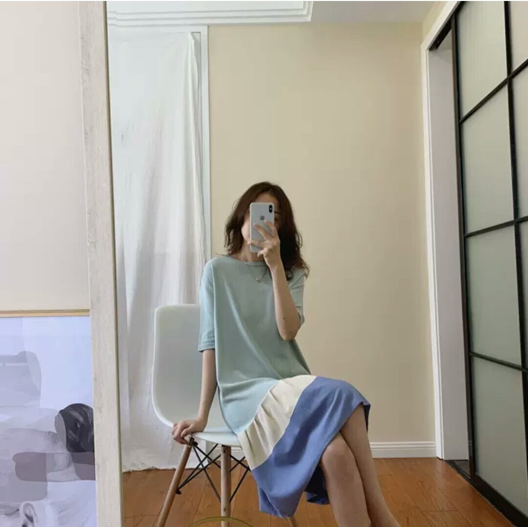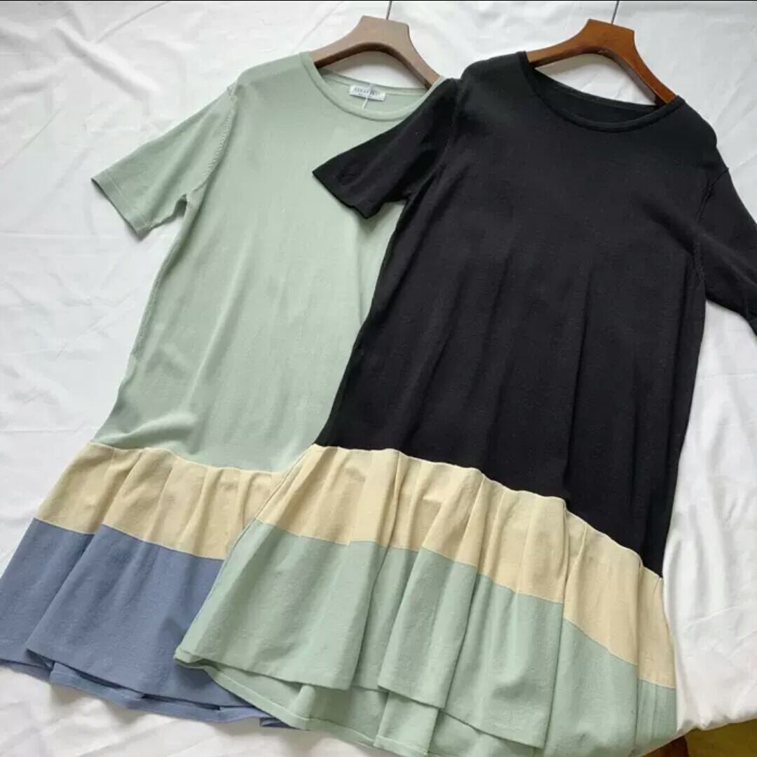 全2色 ラウンドネック ミドル丈 ワンピース 半袖 大人 可愛い カジュアル キレイめ お出かけ お買い物 デート 女子会 春 夏 通学 学生 通勤 韓国ファッション