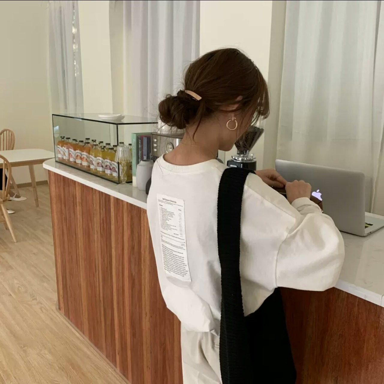 全2色 ラウンドネック レタリング 文字 デザイン 長袖Tシャツ 大人 カジュアル 可愛い シンプル お出かけ お買い物 デート 女子会 春 夏 通学 学生 通勤 韓国ファッション