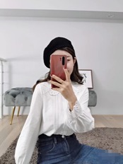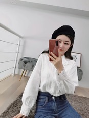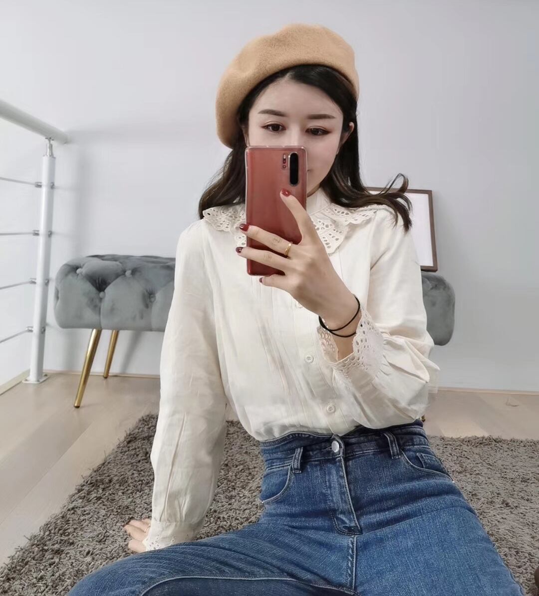 アイレットレースが上品で大人っぽい印象のシャツです。
