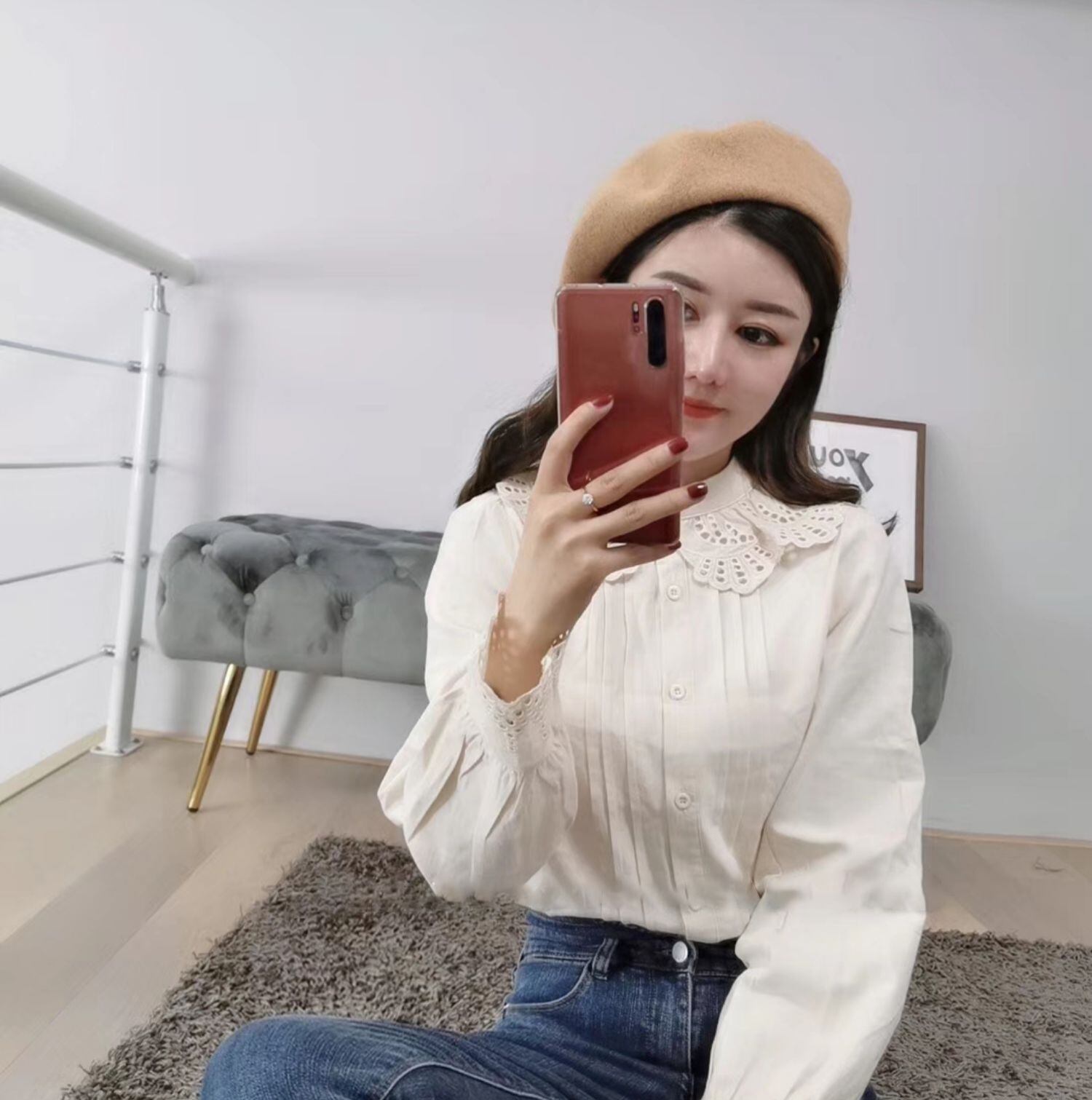 全2色トップス ブラウス シャツ ハイネック レース アイレットレース パフスリーブ フロントボタン レトロ 無地 カジュアル きれいめ タック 大人 女子会 韓国ファッション 春 夏