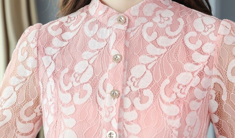 フロントボタンがアクセントになり、袖と裾には透け感があるため、レースがよりキレイに見え、華やかさもアップ!