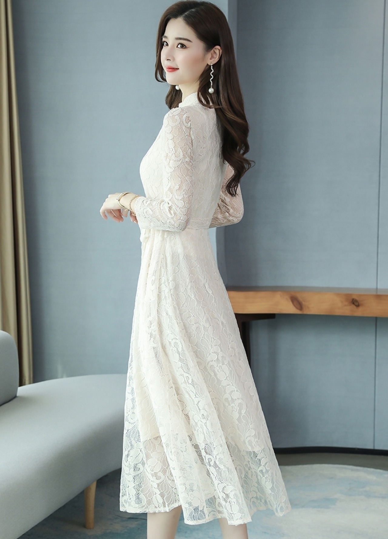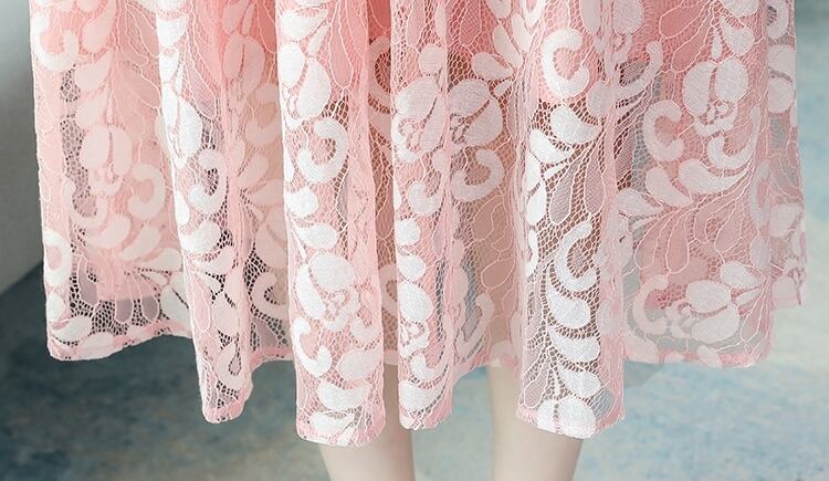 メッシュレースのディテールが美しいドレスです。