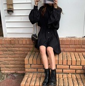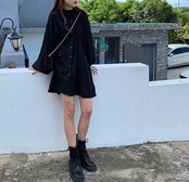 スタンドカラーデザインがおしゃれなシャツワンピースです。