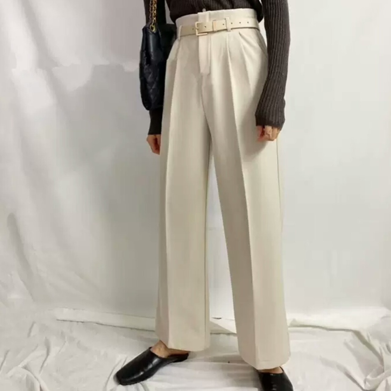 全3色 ベルトつき ワイドレッグ パンツ 無地 シンプル センタープレス 大人 カジュアル キレイめ スタイリッシュ お出かけ お買い物 デート 女子会 春 夏 秋 通学 学生 通勤 韓国ファッション オフィス