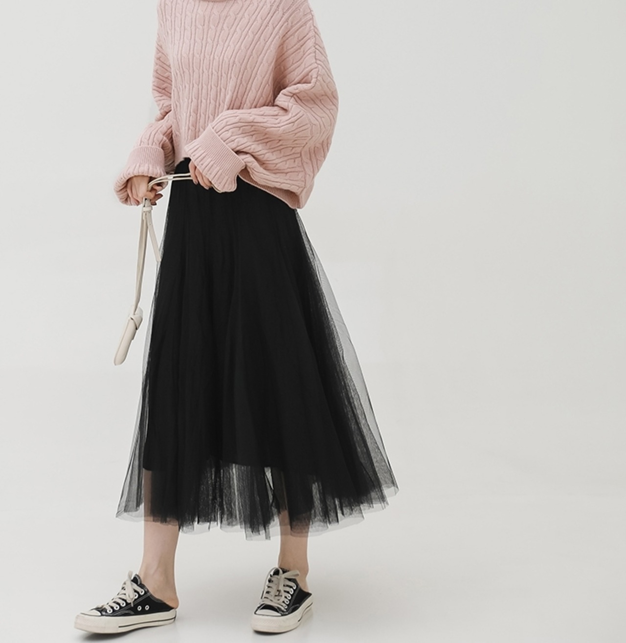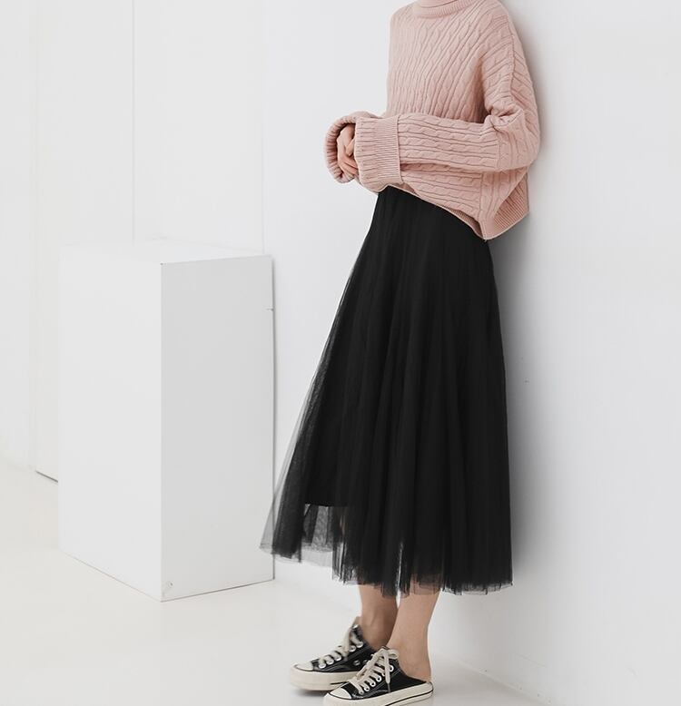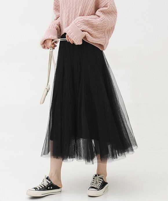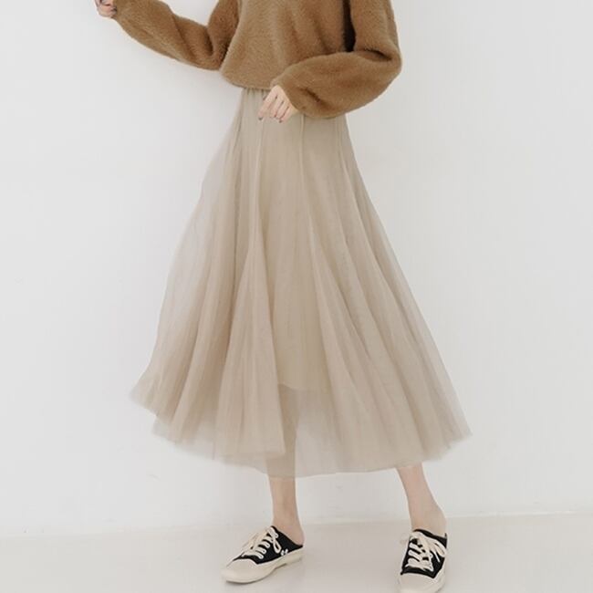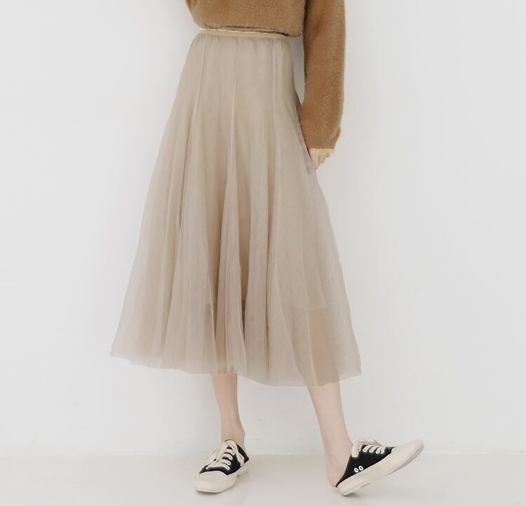 上品でフェミニンな印象のチュールスカートです。