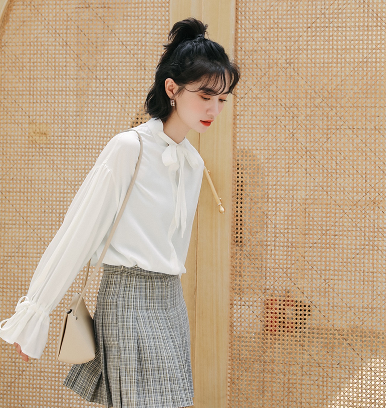 全2色 トップス ブラウス ボウタイネック リボン ゆったり トランペットスリーブ 長袖 大人可愛い 韓国ファッション 上品 カジュアル きれいめ デート 上品 レトロ 春 夏