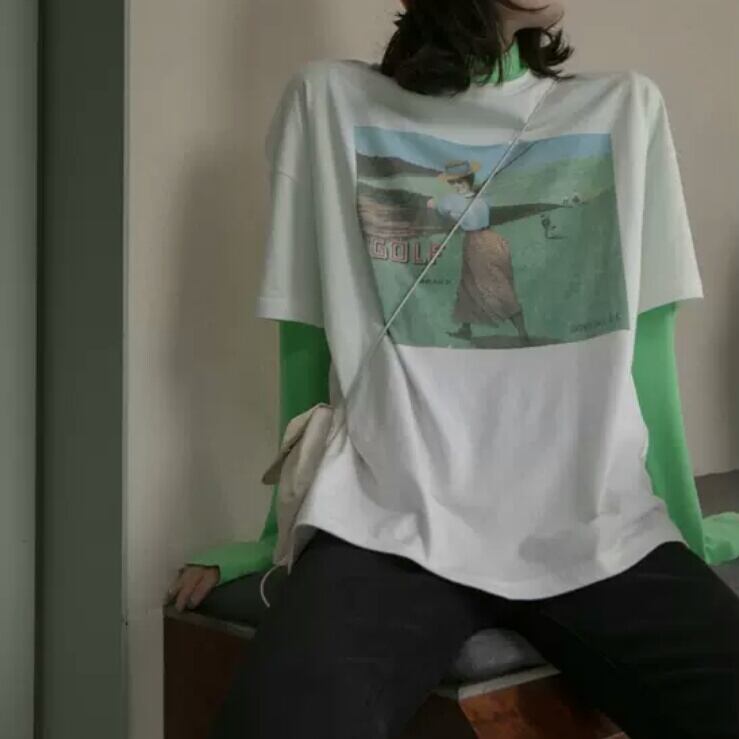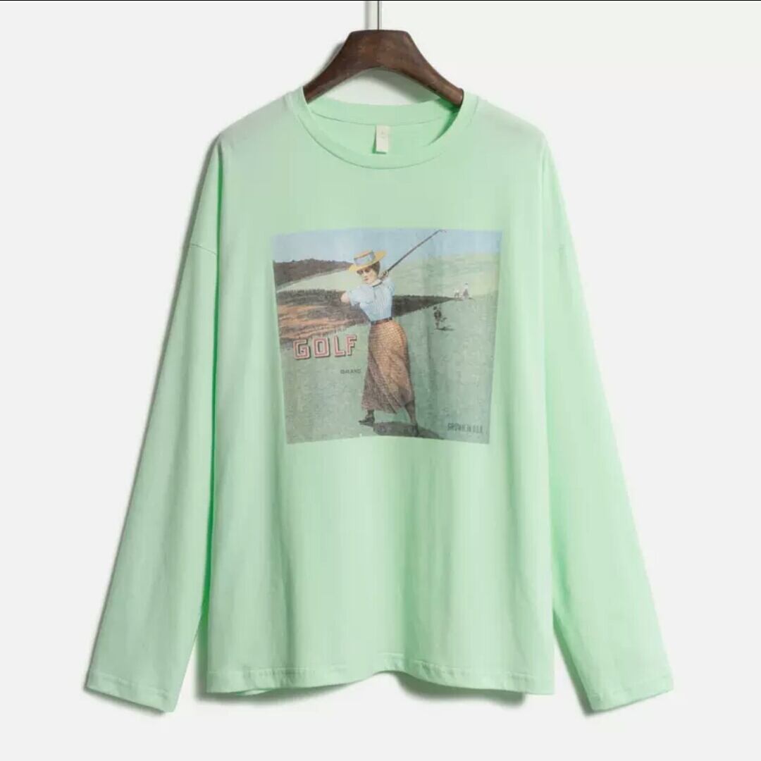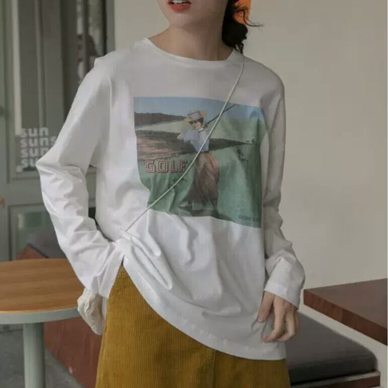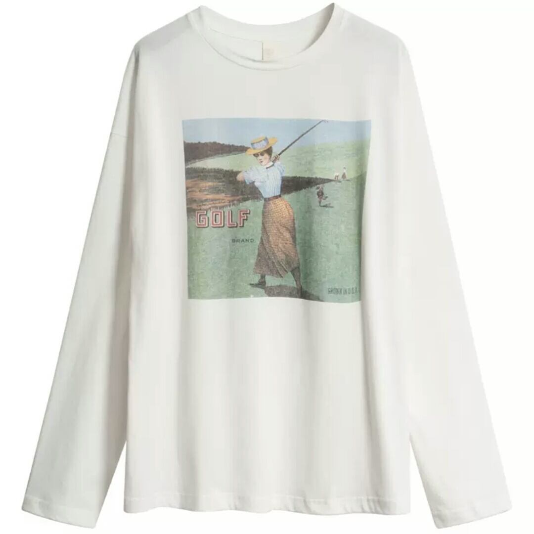 全2色2種 ヴィンテージライク プリント 長袖 半袖 Tシャツ トップス 大人 カジュアル 可愛い お出かけ お買い物 デート 女子会 春 夏 通学 学生 通勤 韓国ファッション