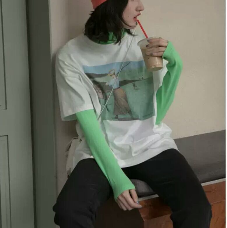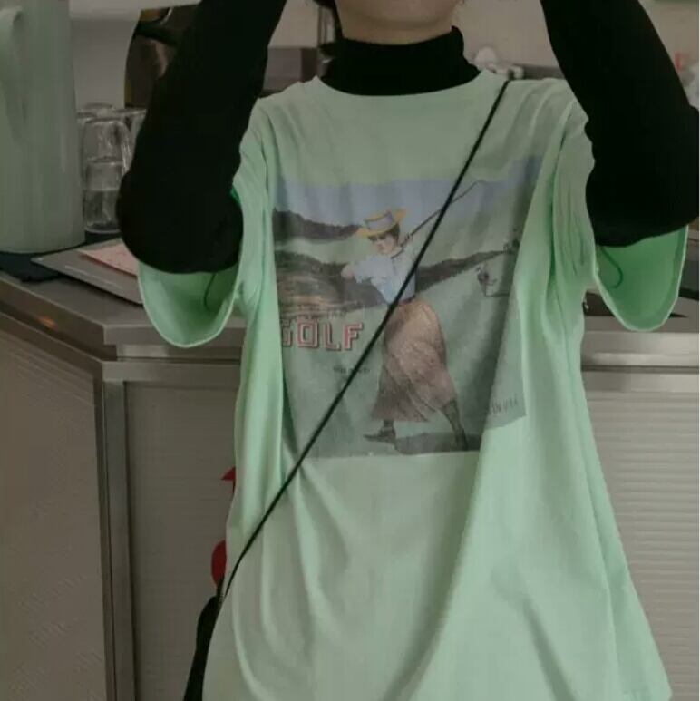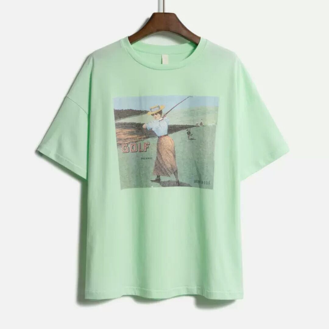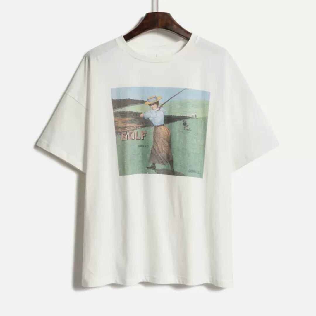 全2色2種 ヴィンテージライク プリント 長袖 半袖 Tシャツ トップス 大人 カジュアル 可愛い お出かけ お買い物 デート 女子会 春 夏 通学 学生 通勤 韓国ファッション