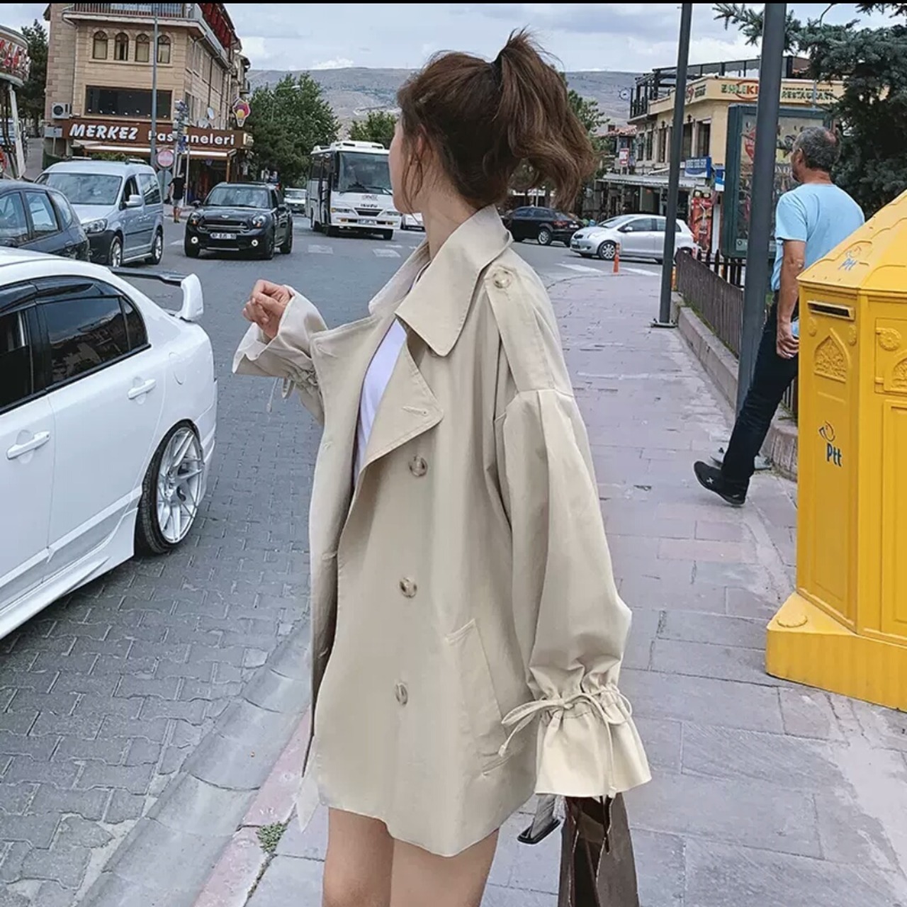 襟つき ミドル丈 ウインドブレーカー アウター 羽織 大人 カジュアル キレイめ シンプル 無地 お出かけ お買い物 デート 女子会 春 夏 秋 通学 学生 通勤 韓国ファッション