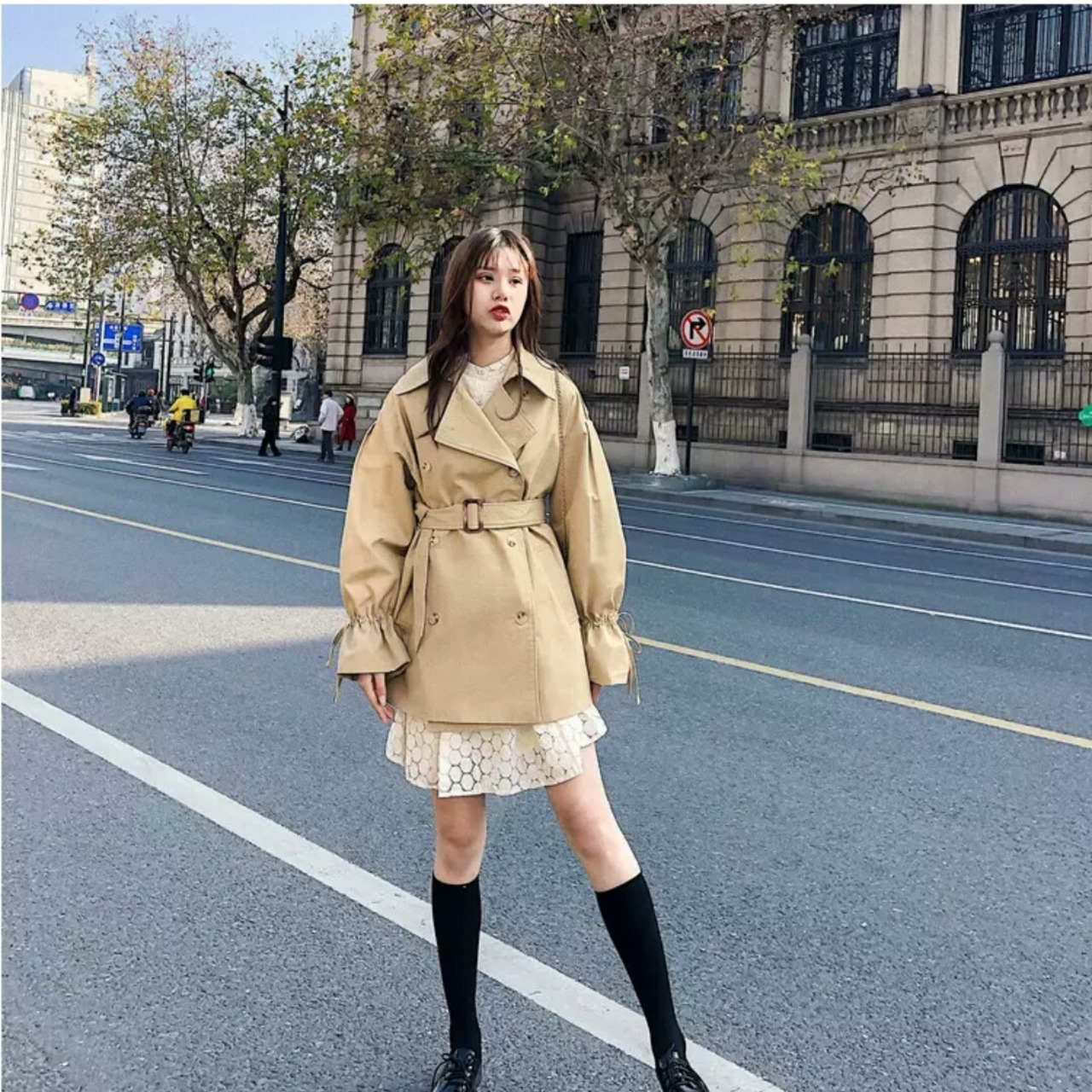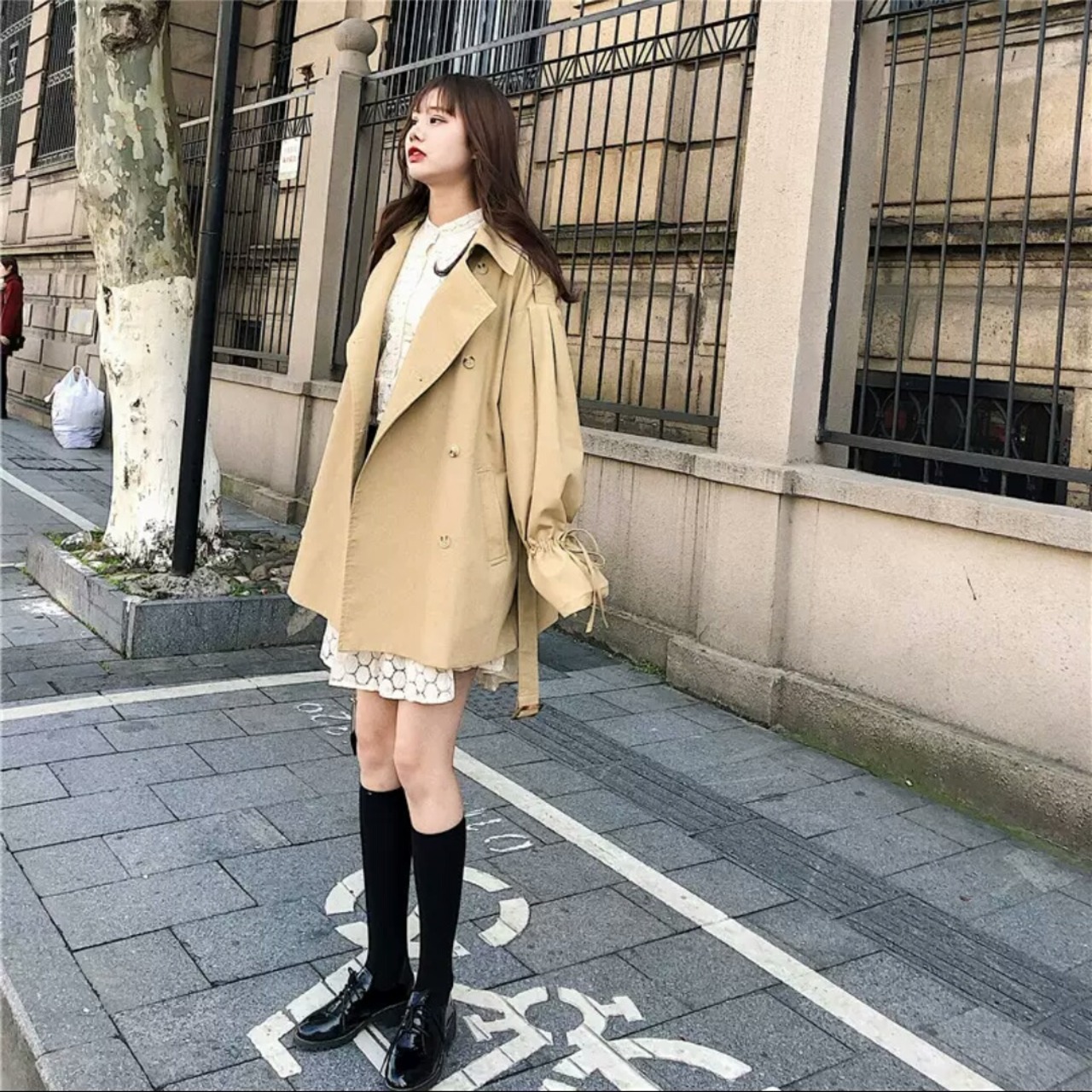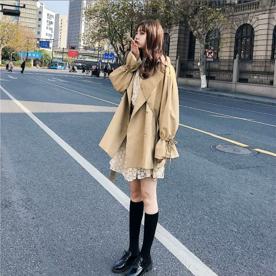 襟つき ウインドブレーカー ベルト ショート丈 大人 カジュアル 可愛い キレイめ お出かけ お買い物 デート 女子会 春 秋 通学 学生 通勤 韓国ファッション