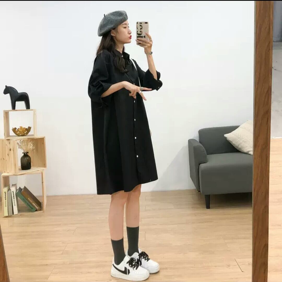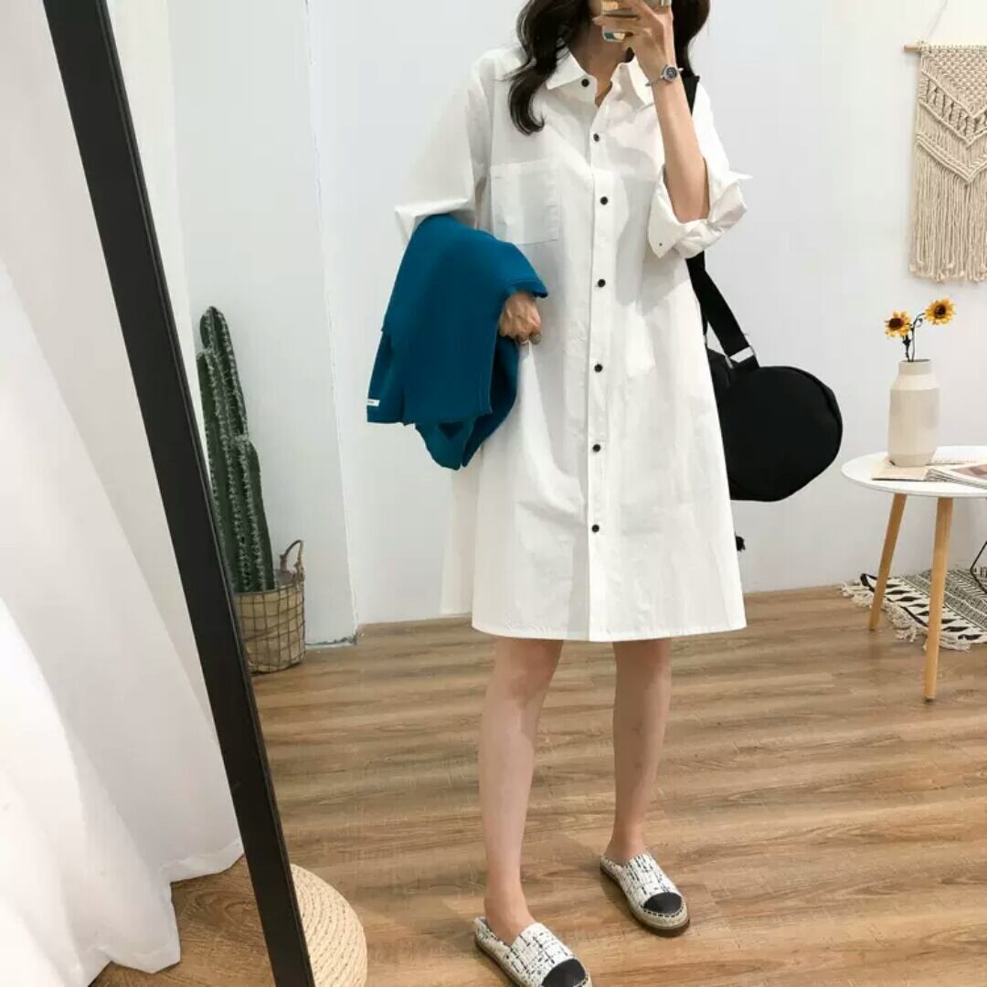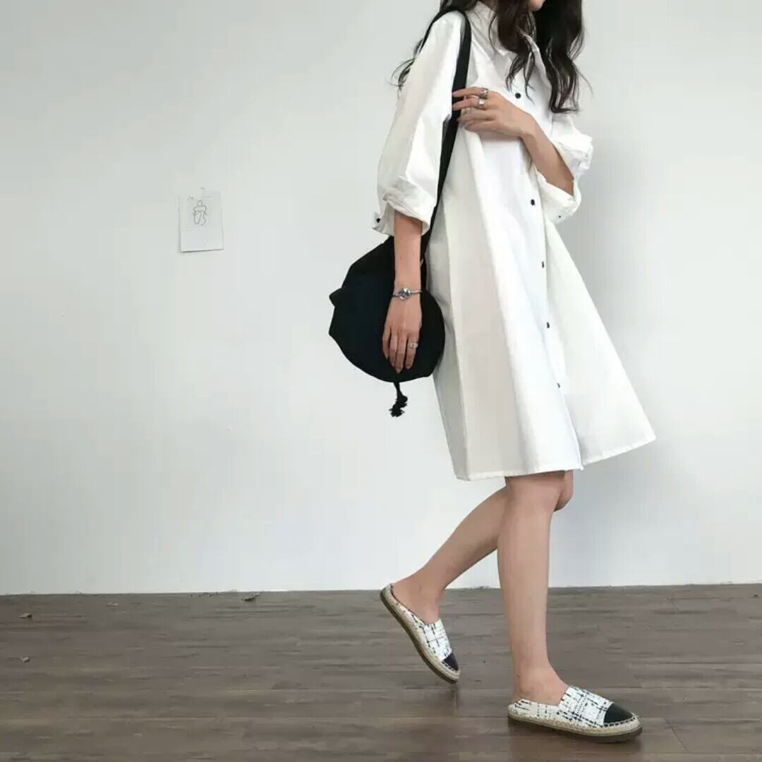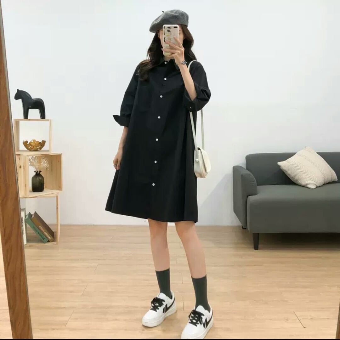 全2色 シンプル シャツ ワンピース ショート丈 無地 大人 カジュアル キレイめ 可愛い お出かけ お買い物 デート 女子会 春 秋 夏 通学 学生 通勤 韓国ファッション
