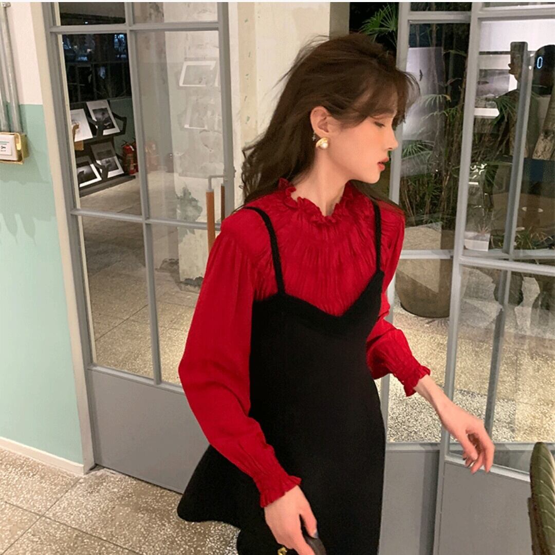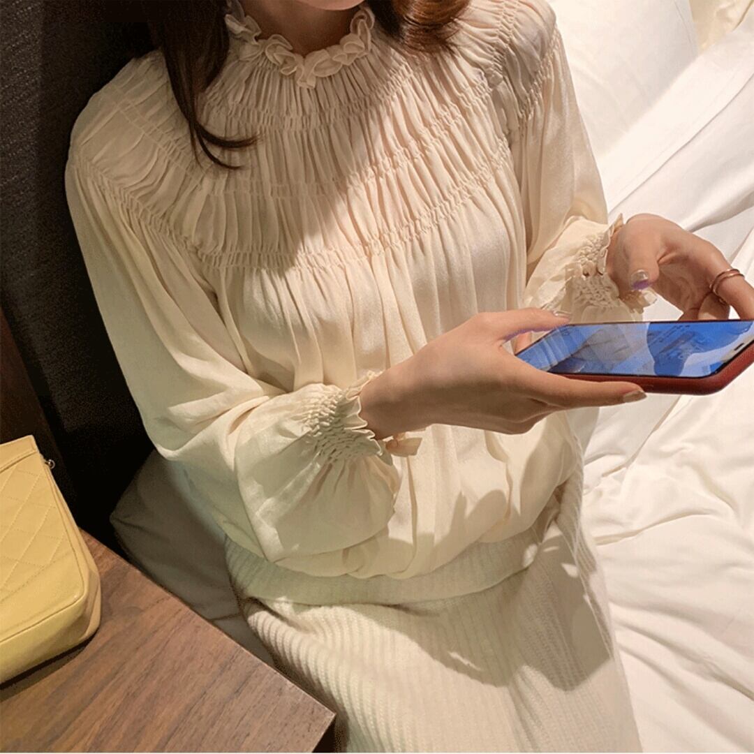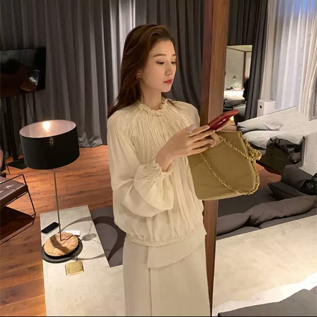 全3色 シフォン シャツ 長袖 ブラウス トップス 大人 シンプル キレイめ 上品 カジュアル お出かけ お買い物 デート 女子会 春 秋 通学 学生 通勤 韓国ファッション