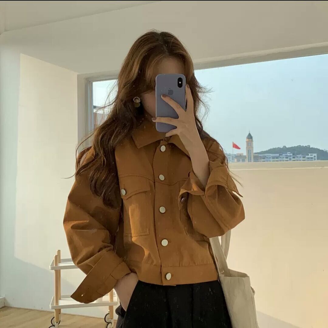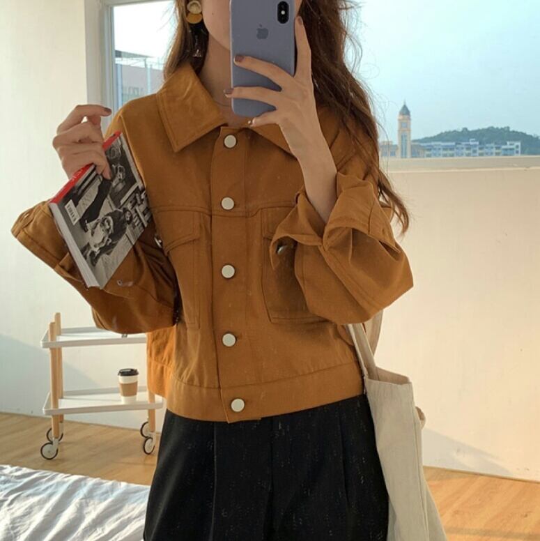 ショート丈 デニム ジャケット アウター 大人 カジュアル 可愛い シンプル キレイめ 無地 お出かけ お買い物 デート 女子会 春 秋 通学 学生 通勤 韓国ファッション