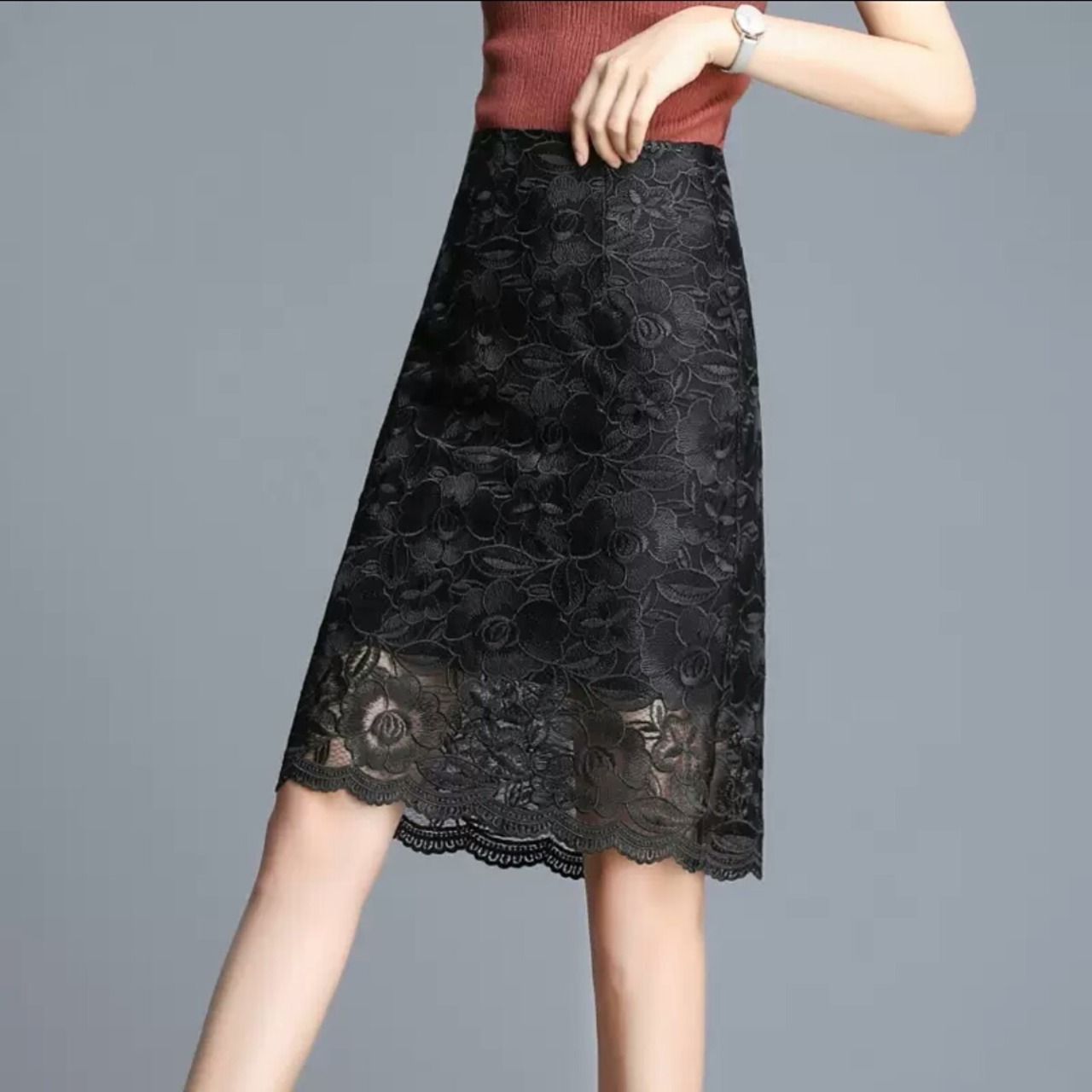 全2色 ハイウエスト レース スカート ひざ丈 大人 キレイめ 可愛い エレガント 上品 お出かけ お買い物 デート 女子会 春 夏 通学 学生 通勤 韓国ファッション