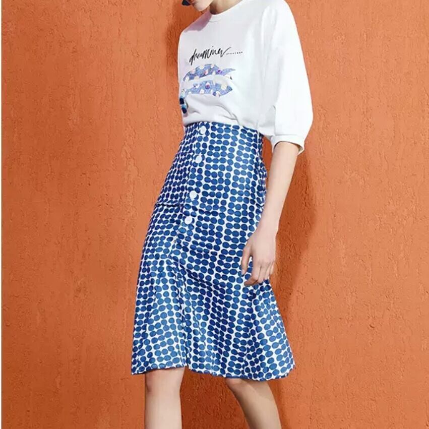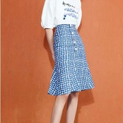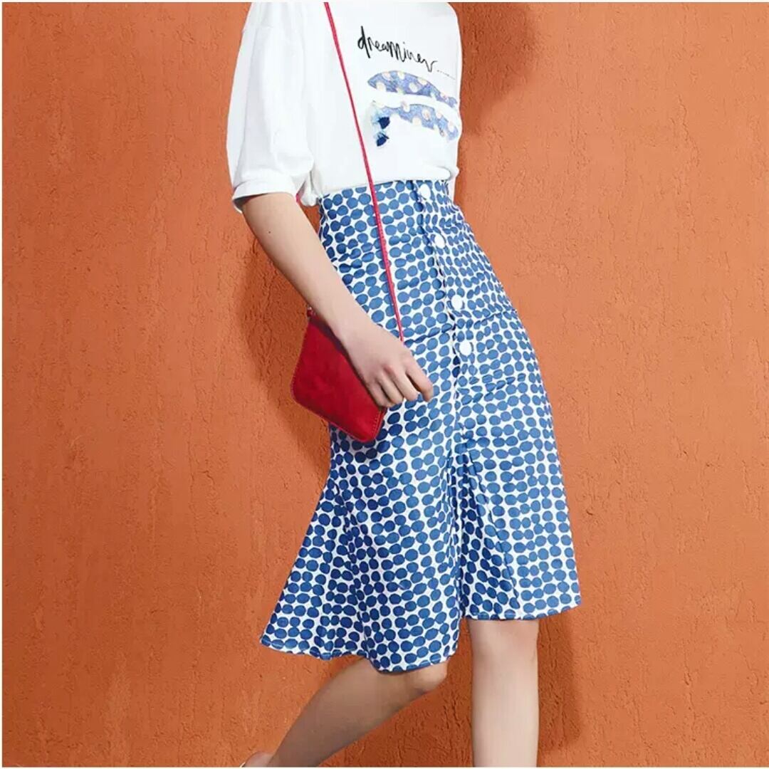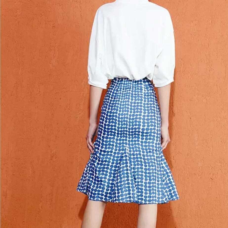 ドット柄 ハイウエスト フィッシュテイル スカート ミドル丈 大人 カジュアル キレイめ 可愛い お出かけ お買い物 デート 女子会 春 夏 通学 学生 通勤 韓国ファッション