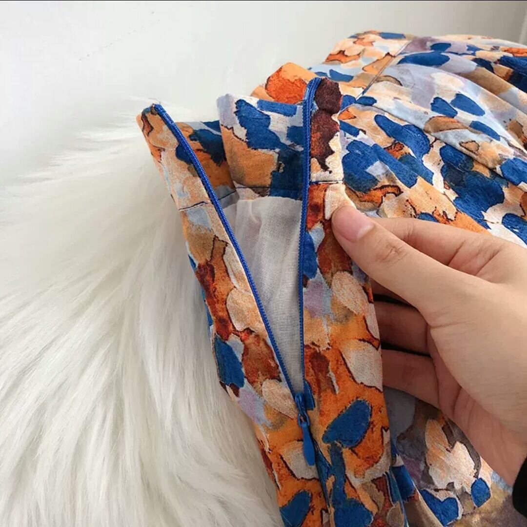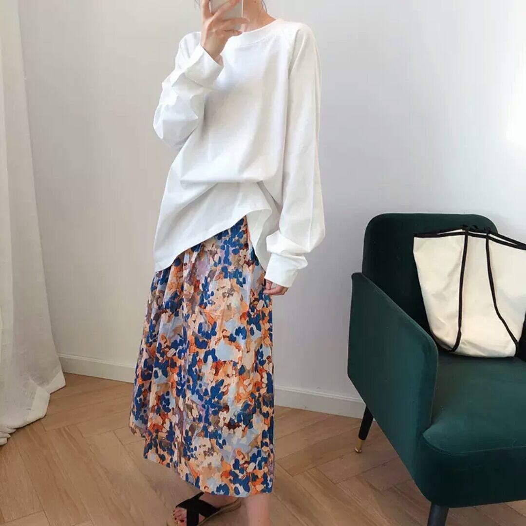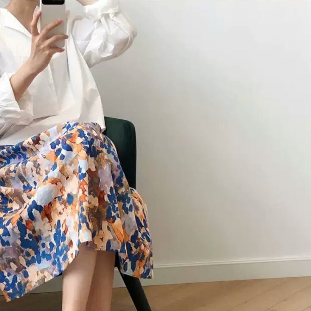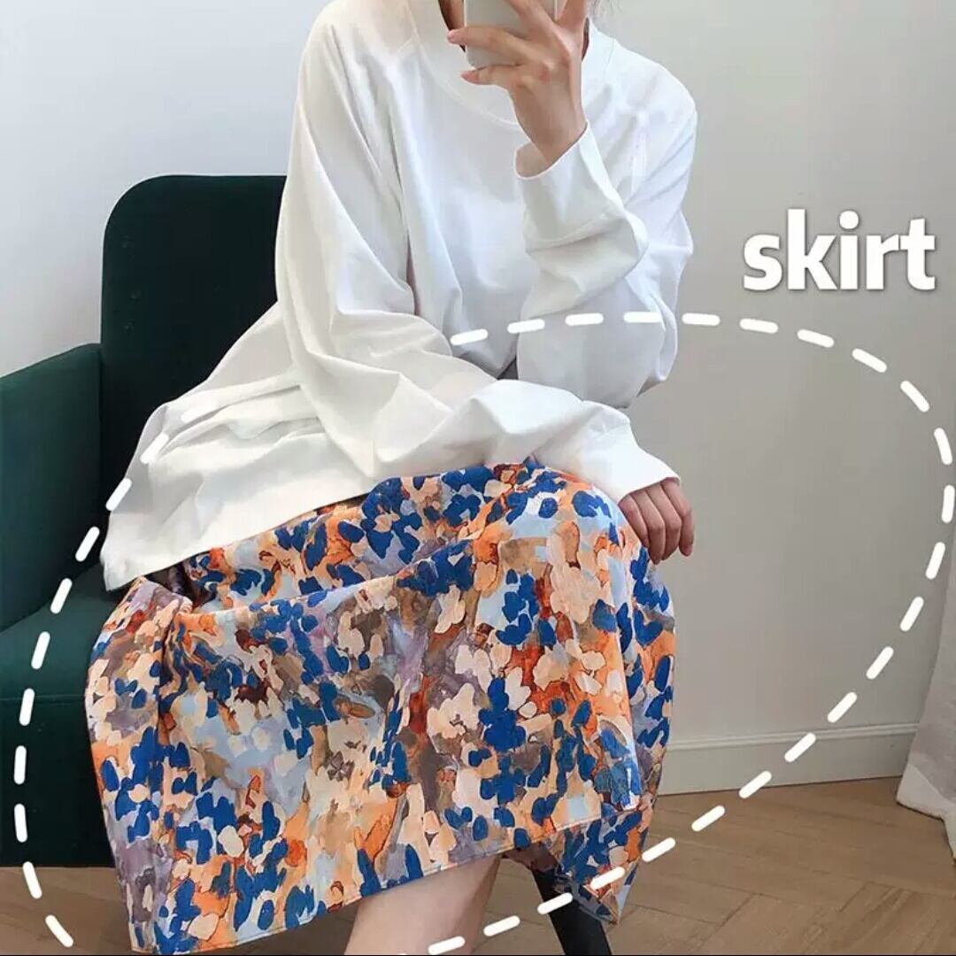 ハイウエスト 水彩画風 リネン スカート リゾート お出かけ お買い物 デート 女子会 春 夏 大人 カジュアル 可愛い キレイめ 通学 学生 通勤 韓国ファッション