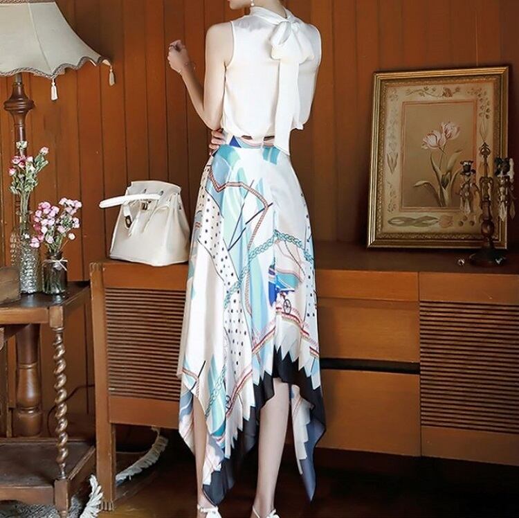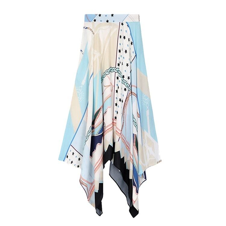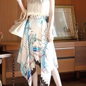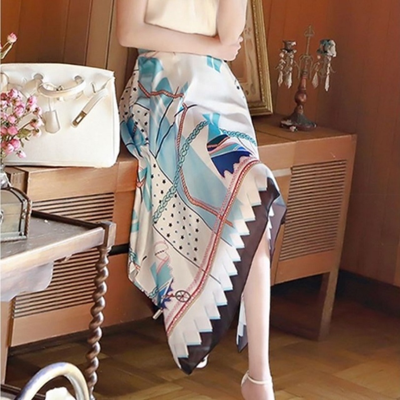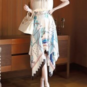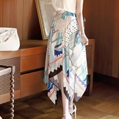 スカーフ柄がエレガントなアシンメトリースカート。