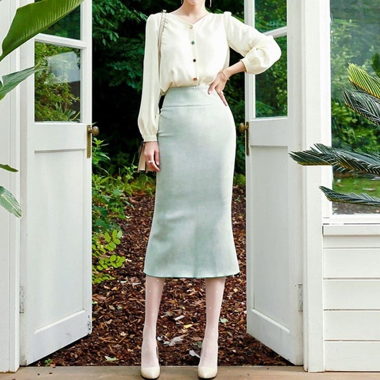 女性らしいラインが綺麗なマーメイドスカート。