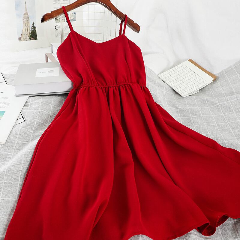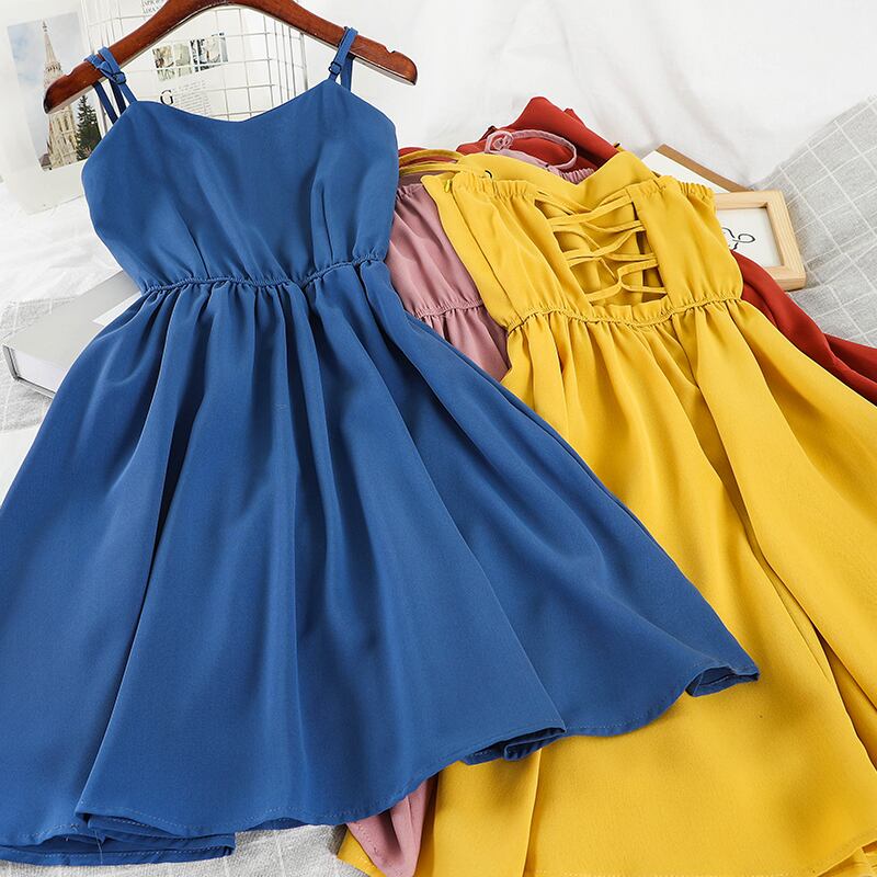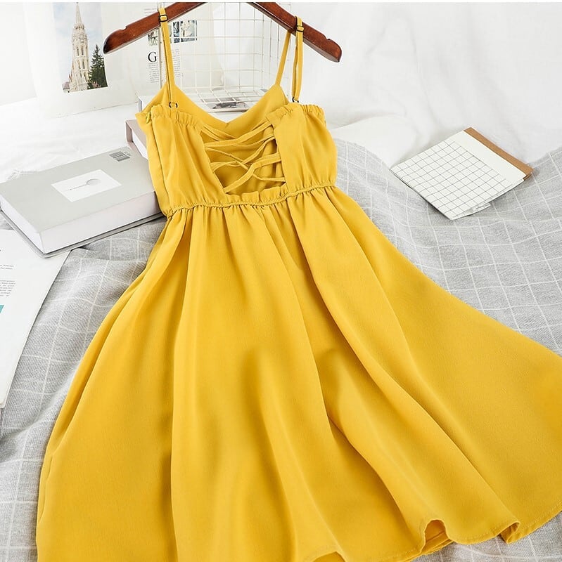 ビビットなカラーが鮮やかなキャミドレス。