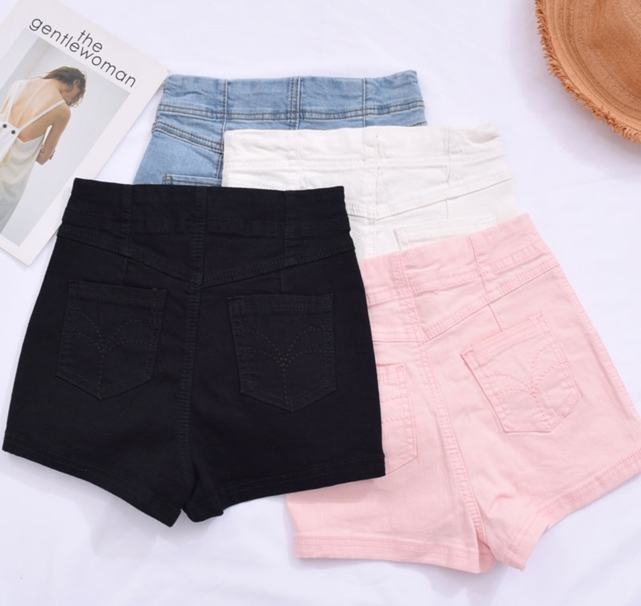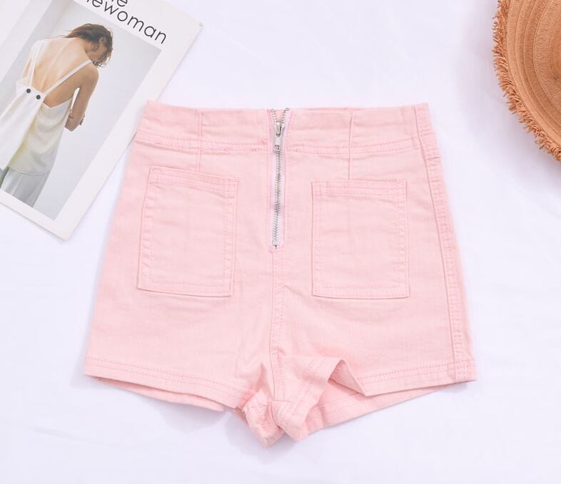 全4色 ショートパンツ ボトムス ジッパー フロントポケット ハイウエスト デニム スキニー スリム カジュアル デイリー ビーチ 夏 海 リゾート
