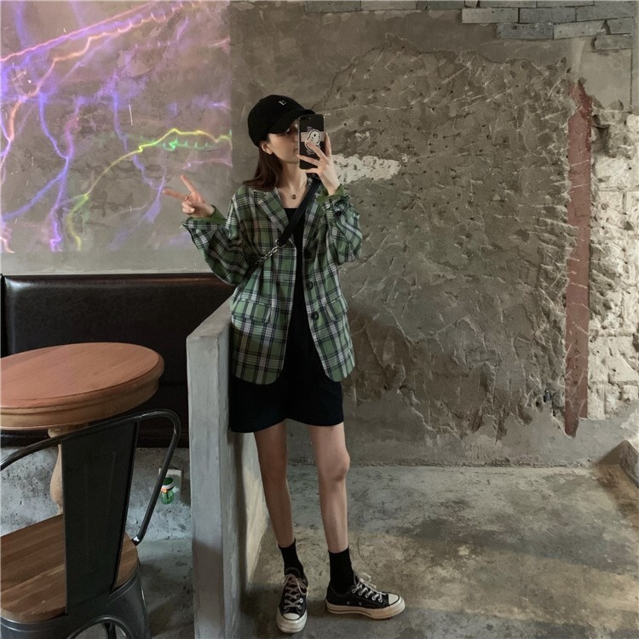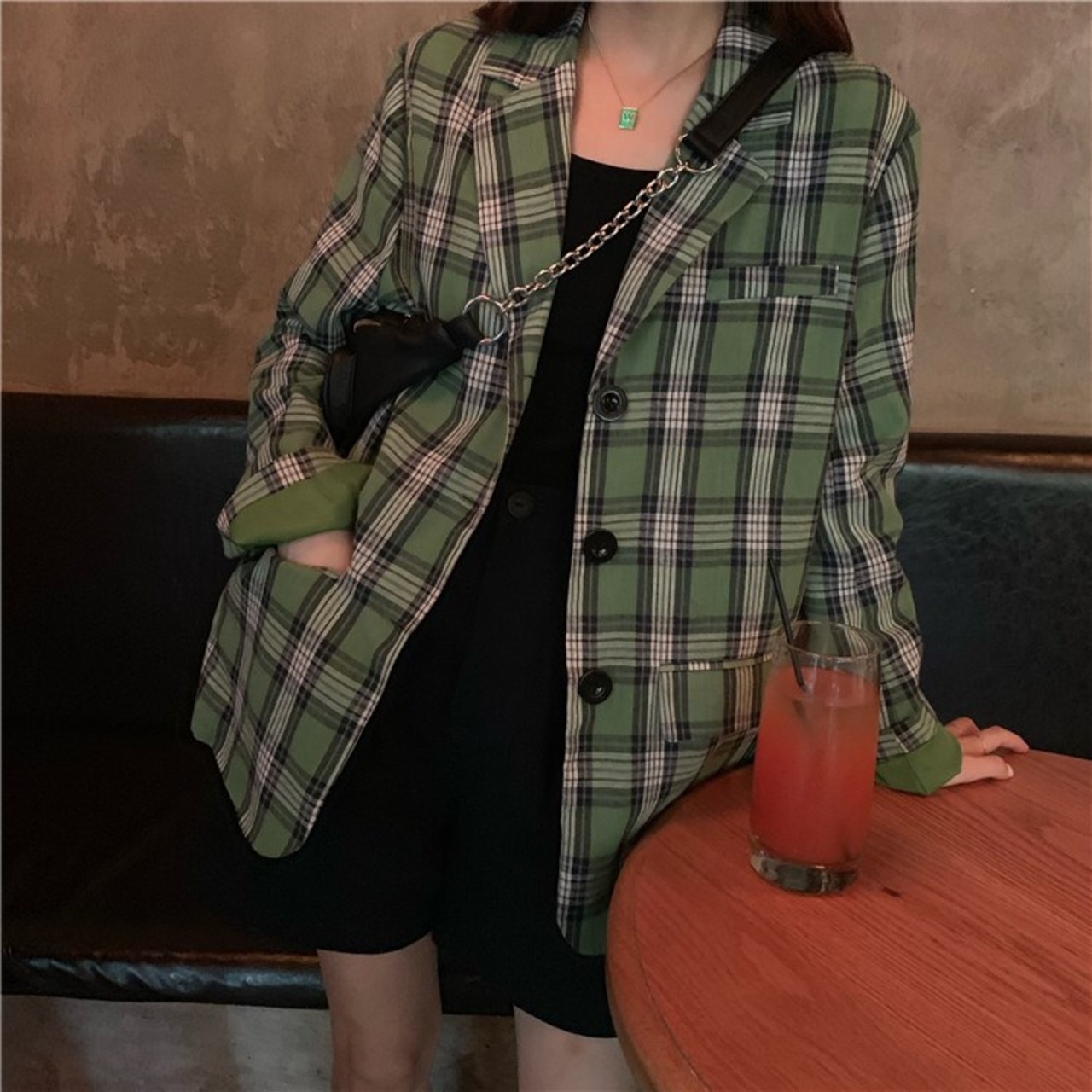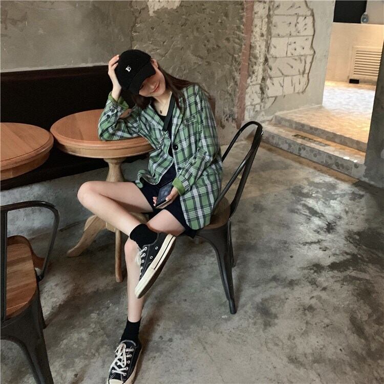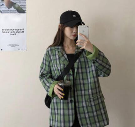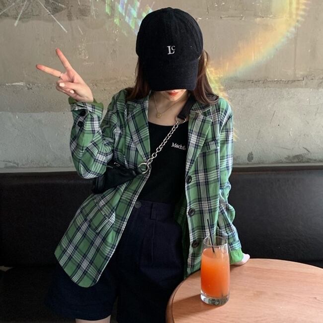 アウター テーラードジャケット コート ジャケット チェック柄 ゆったり 長袖 フロントボタン 羽織 パフスリーブ 大人カジュアル デイリー トレンド デート シンプル ベーシック 春 夏 韓国ファッション