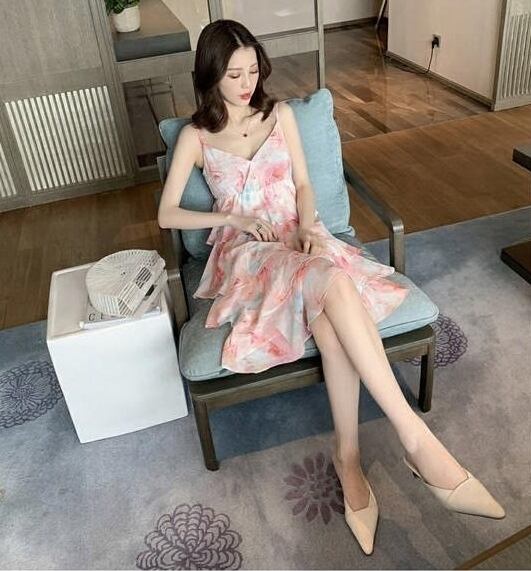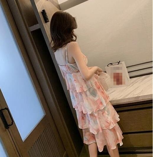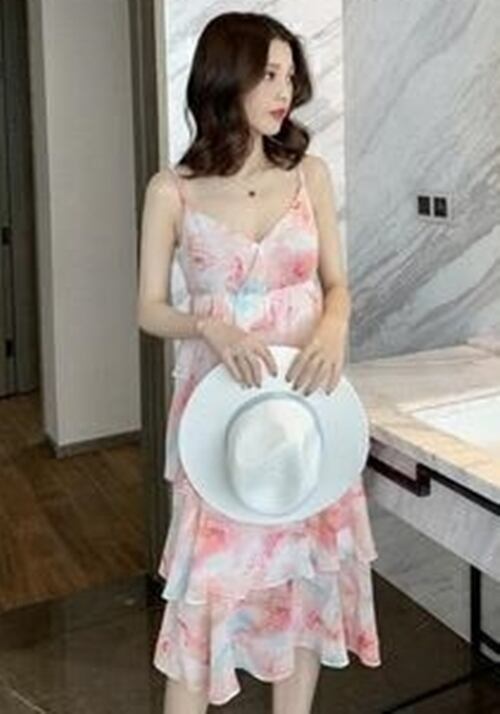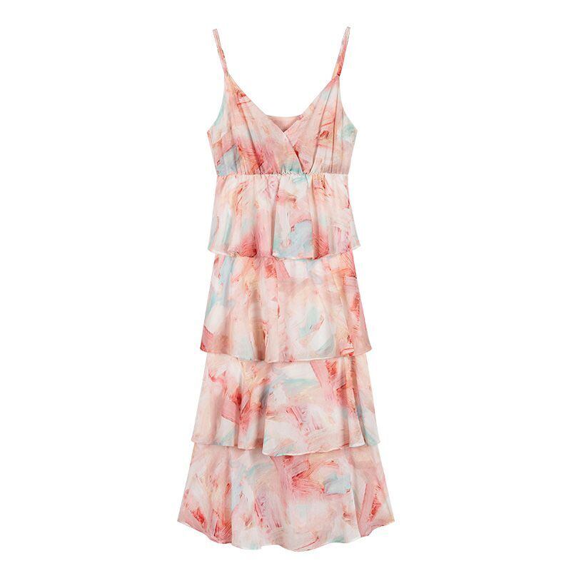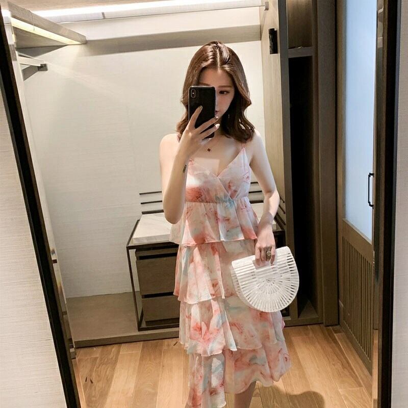 ワンピース ミモレ丈 花柄 キャミワンピース カシュクール ネック ティアード フレア フリル ガーリー 可愛い リゾート ビーチ デート カジュアル きれいめ 夏