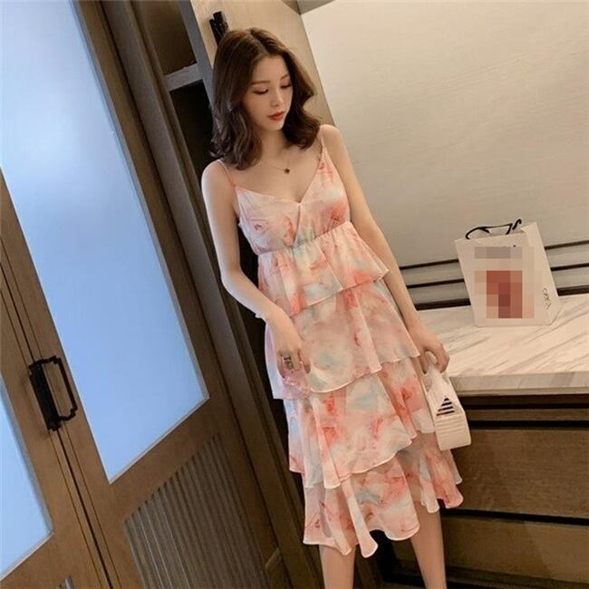 ティアードデザインがおしゃれなミモレ丈キャミワンピースです。