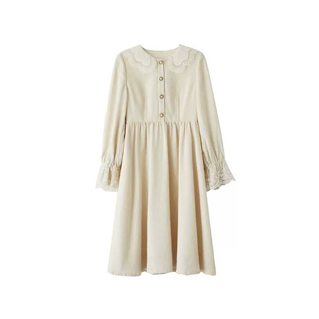 小さいサイズ 襟つき 長袖 ワンピース ドレス ロング丈 大人 可愛い キレイめ エレガント 上品 お出かけ お買い物 デート 女子会 春 夏 秋 通学 学生 通勤 韓国ファッション