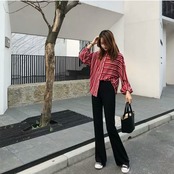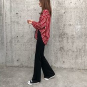 ハイウエストのワイドレッグパンツ♪
