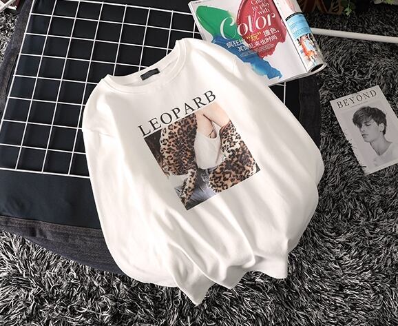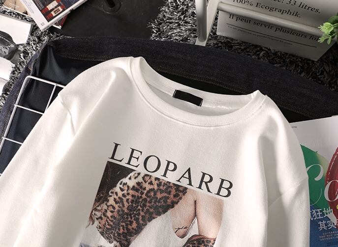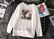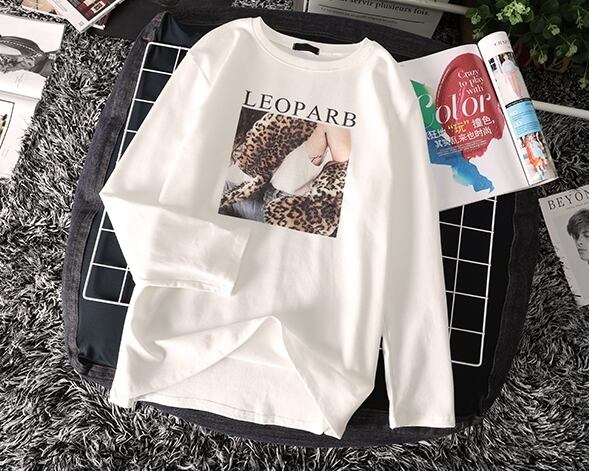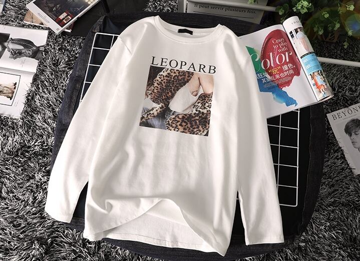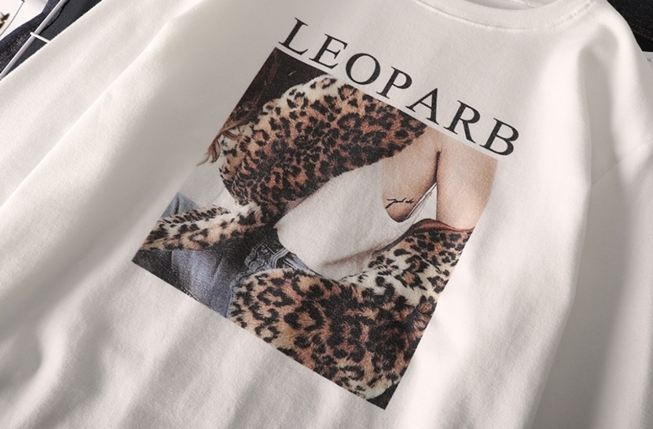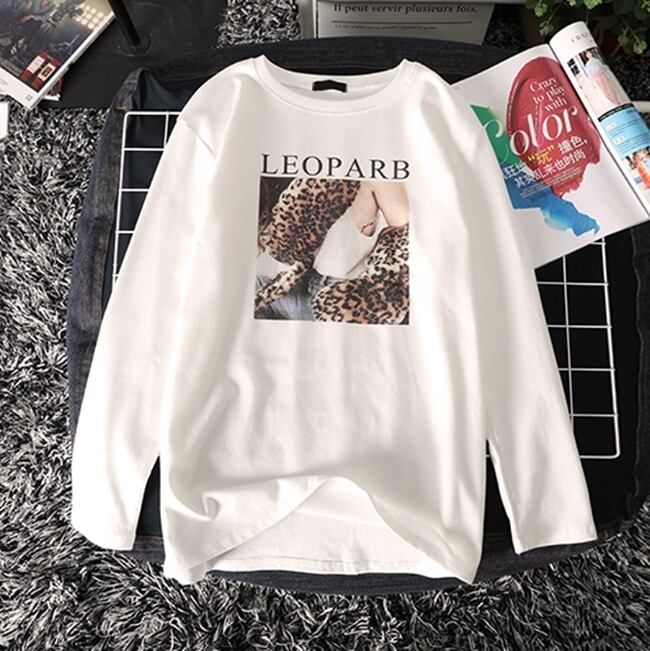 トップス Tシャツ ロゴ レオパード クルーネック シンプル 長袖 ゆったりめ カジュアル デイリー ベーシック ラフ 春 クール