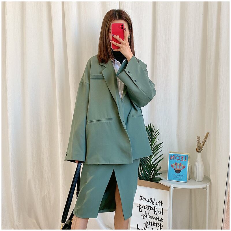トレンドのオーバーサイズがおしゃれなジャケットとスカートの2点セットです。