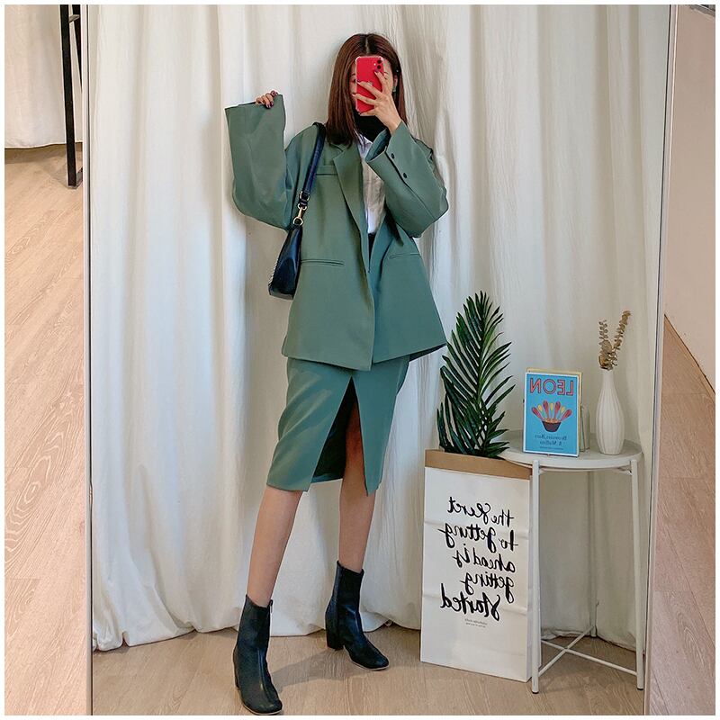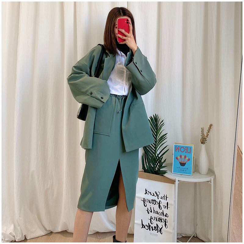 セットアップ ツーピース スーツ ジャケット スカート ひざ丈 ハイウエスト テーラードジャケット カジュアル きれいめ エレガント ゆったり オーバーサイズ フロントスリット デート 女子会 春 夏