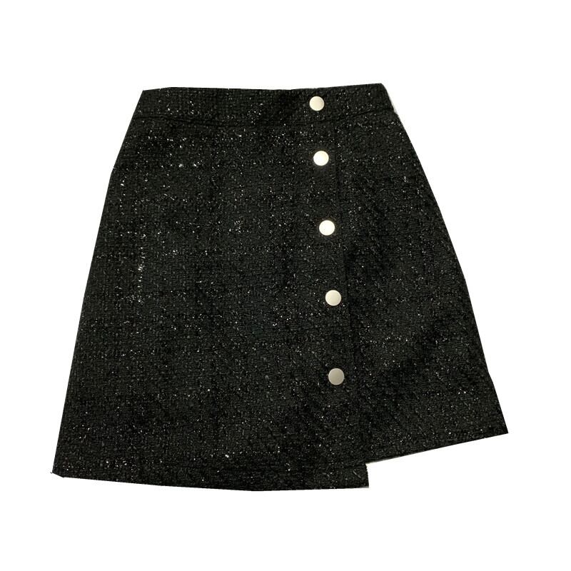 全2種 スカート ボトムス ミニ丈 ラップスカート アシンメトリー キラキラ ラメ グリッター 光沢 サイドボタン Aライン スリム ガーリー 大人可愛い デート ハイウエスト カジュアル きれいめ 女子会 春 夏