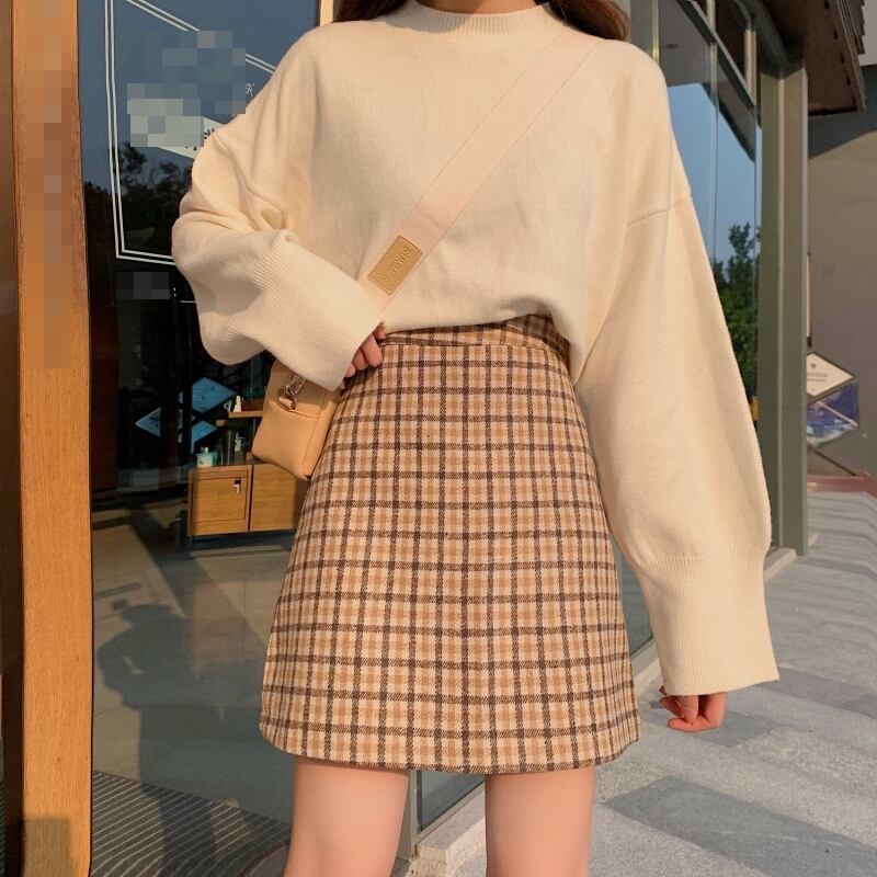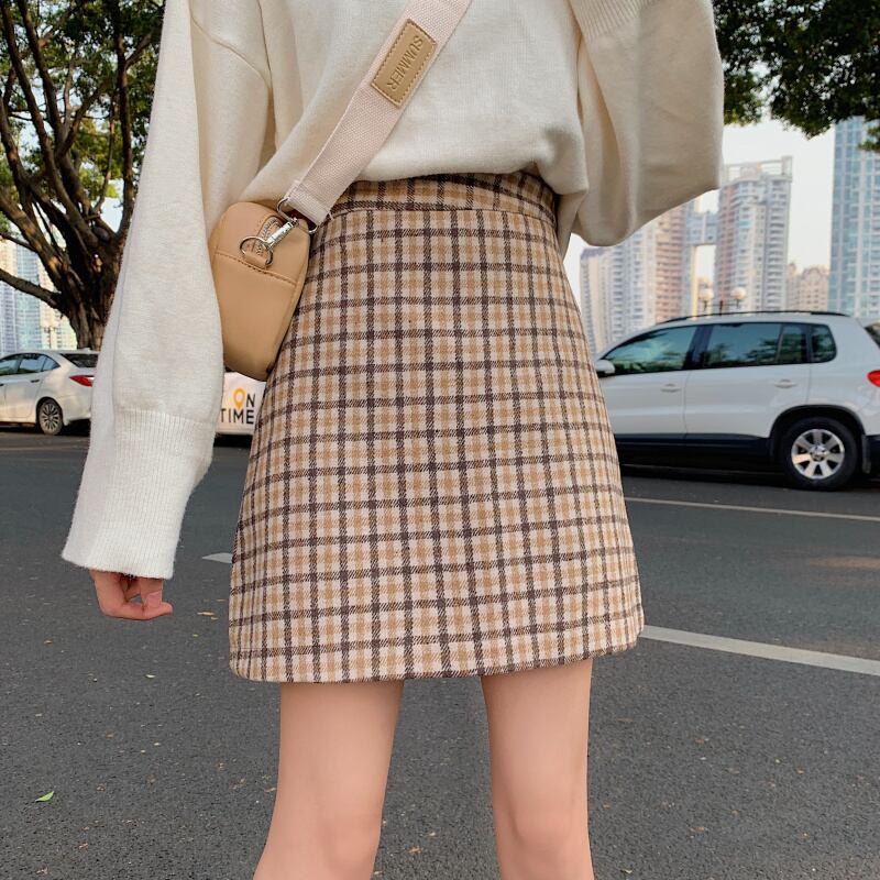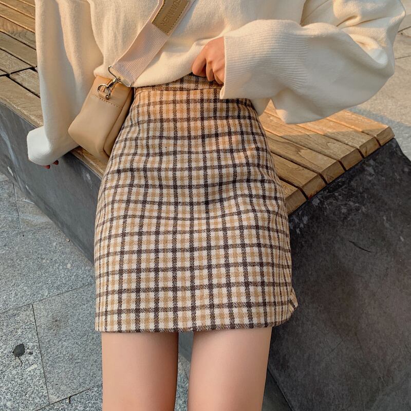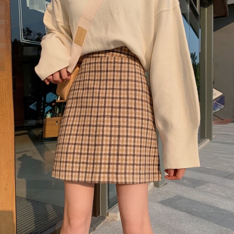 全2色 スカート ボトムス ミニ丈 チェック柄 シンプル 上品 ハイウエスト スリム ガーリー 大人可愛い デート Aライン カジュアル きれいめ 女子会 春 夏
