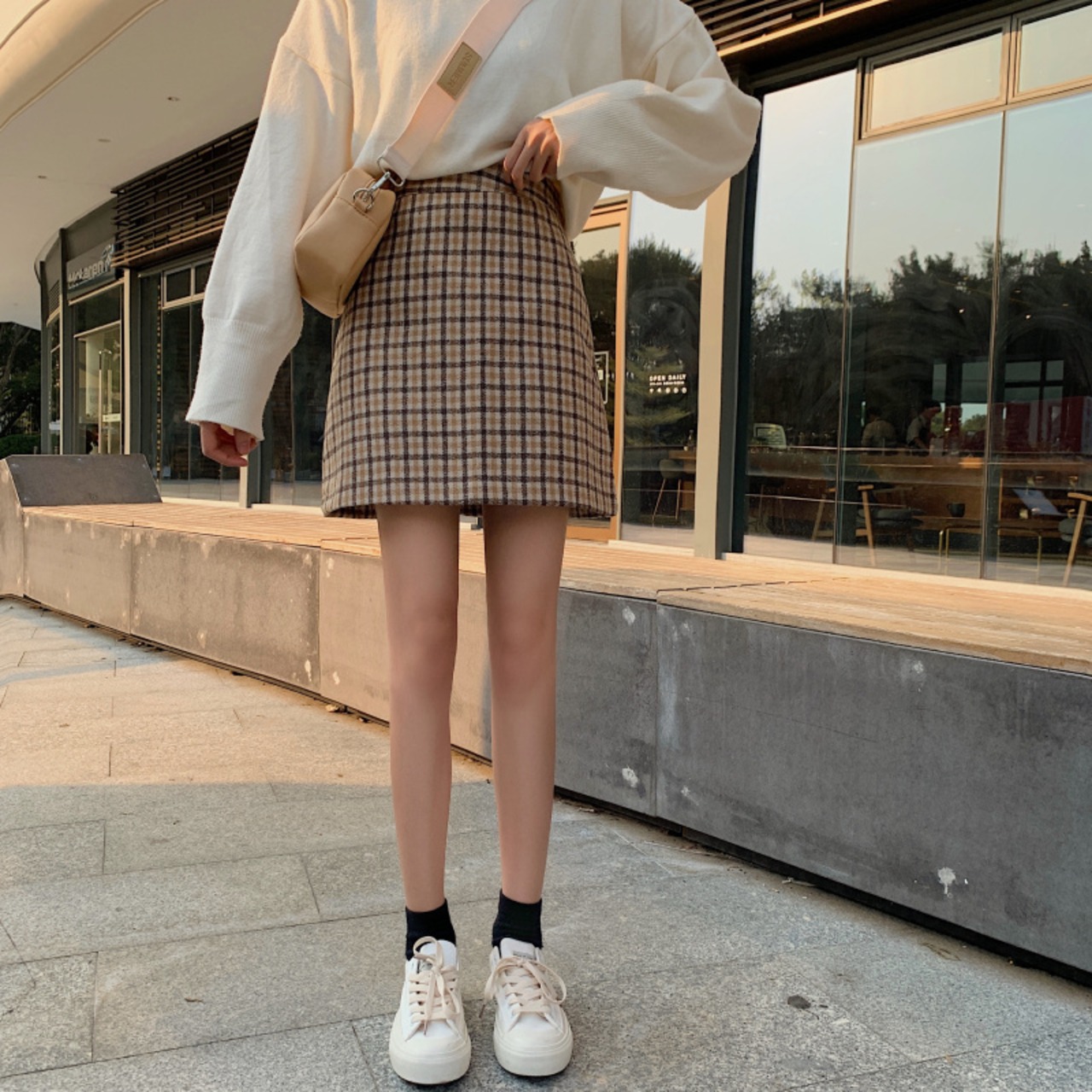 トレンドのチェック柄がおしゃれなミニ丈スカートです。