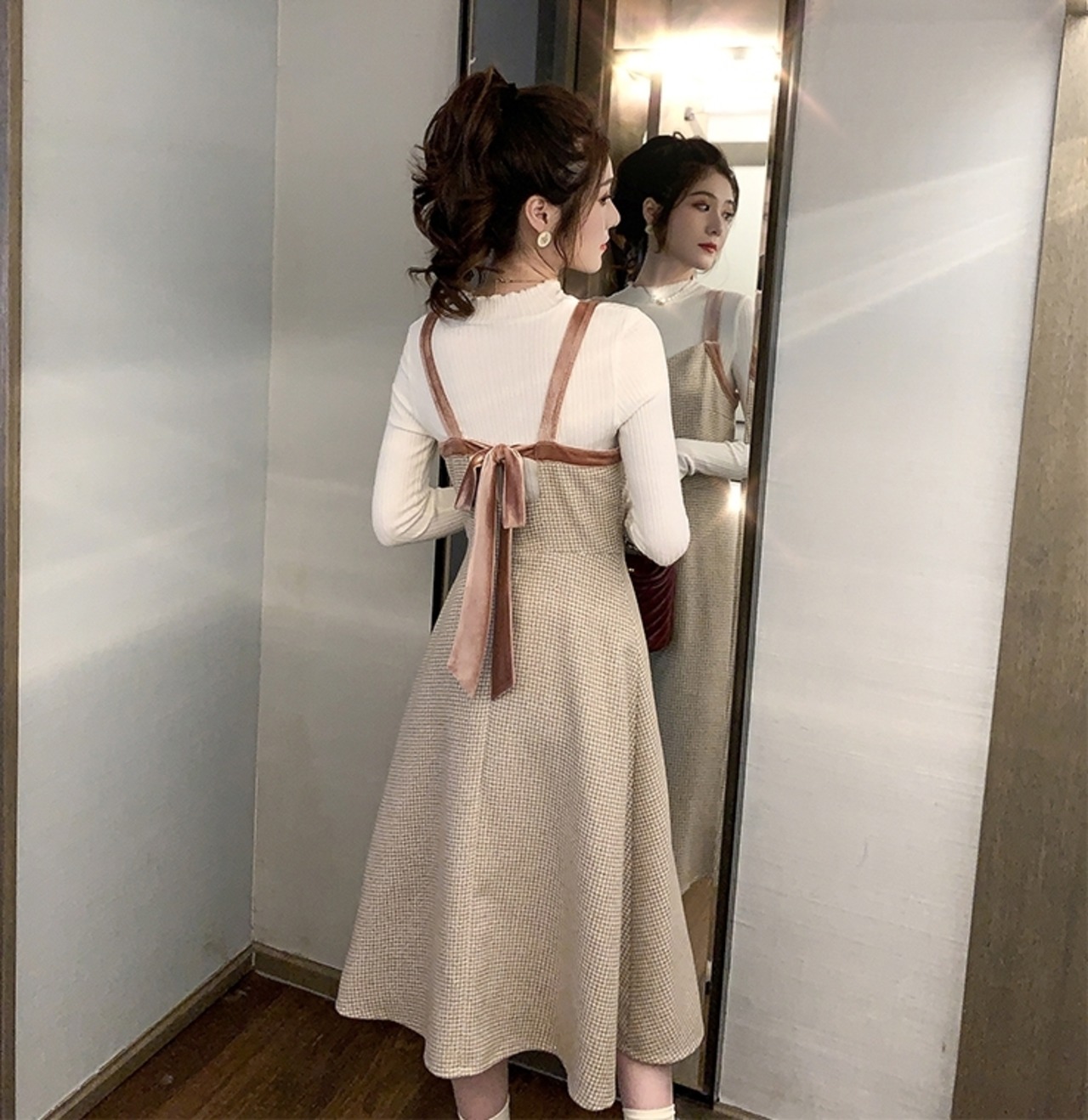 全2種トップス ワンピース ミモレ丈 フレア バックリボン セーター ニット ハイネック スリム 長袖 カジュアル 大人可愛い きれいめ デート 女子会 春 冬