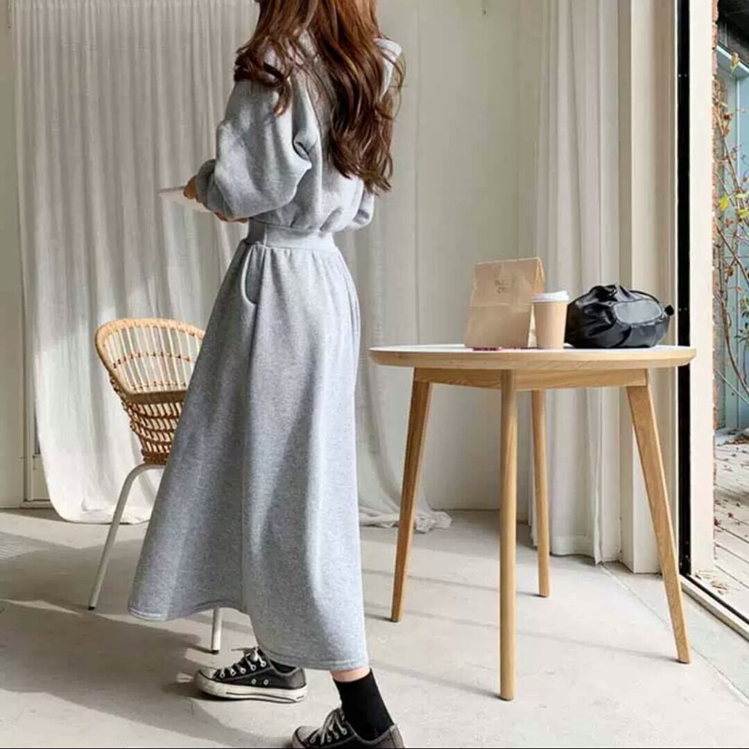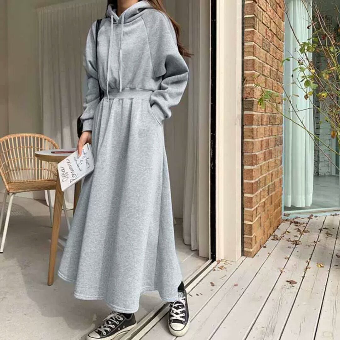全4色2種 フードつき セーター ワンピース ドレス 裏起毛 カジュアル シンプル 無地 ロング丈 大人 可愛い キレイめ お出かけ お買い物 デート 女子会 春 秋 通学 学生 通勤 韓国ファッション