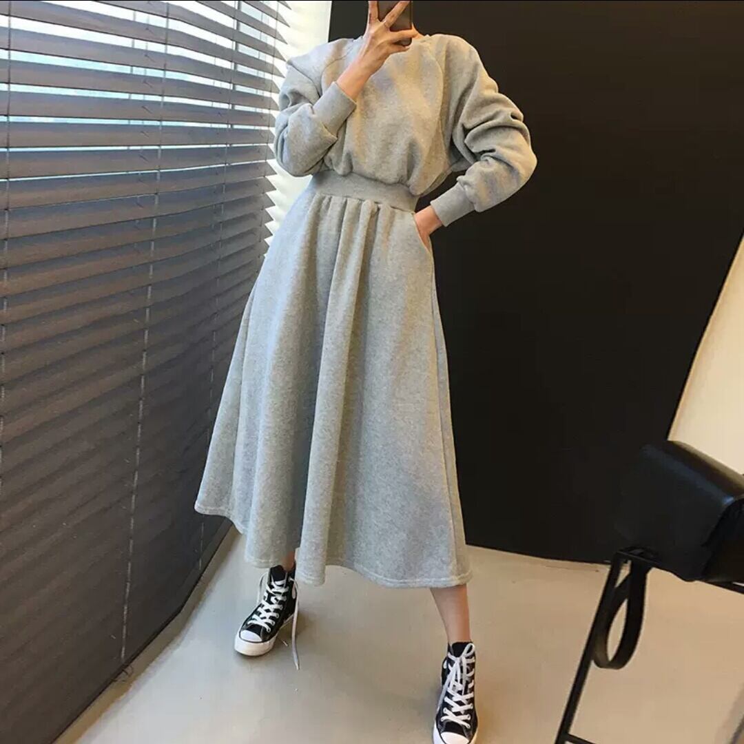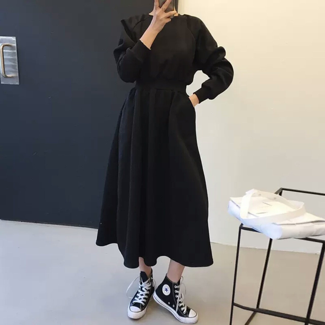 全2色 カジュアル スウェット セーター ワンピース ドレス 無地 シンプル カジュアル 大人 可愛い キレイめ お出かけ お買い物 デート 女子会 春 秋 通学 学生 通勤 韓国ファッション